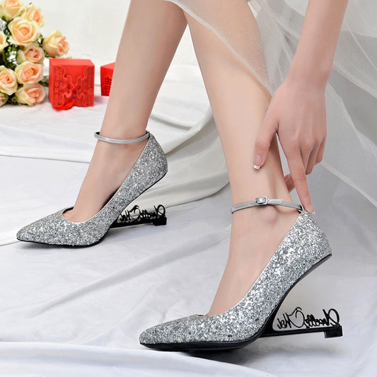 ウェッジヒールレターポイントセクシーキャットウォークウェディングシューズ