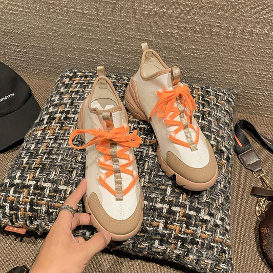 新しい厚底ミックスカラーカジュアルスニーカーレディースシューズ