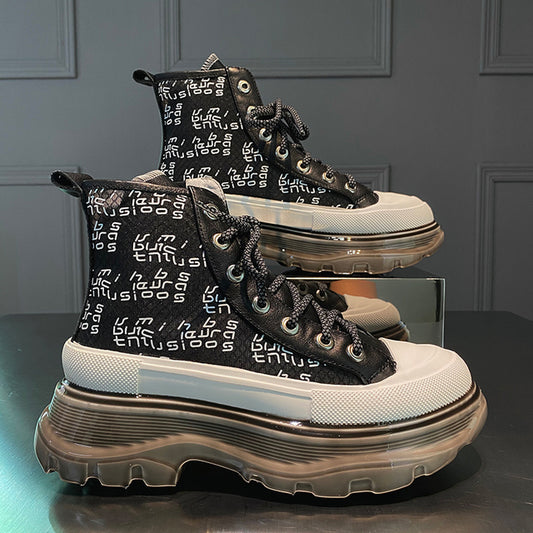 牛革メッシュプリントレースハイトッププラットフォームシューズ