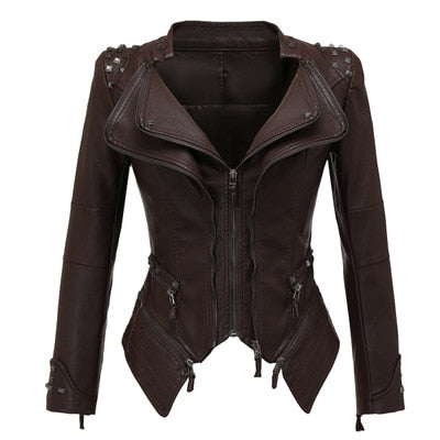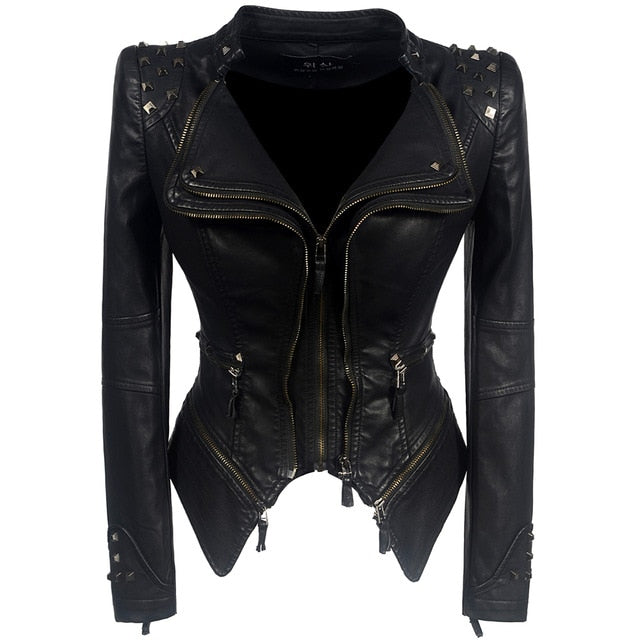 新しいファッションレディーススムースモーターサイクルフェイクレザージャケットレディースロングスリーブ秋冬バイカーストリートウェアブラックピンクコート