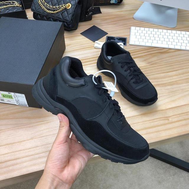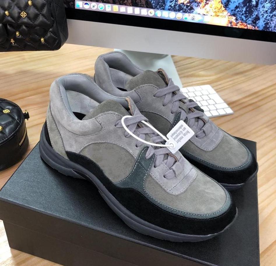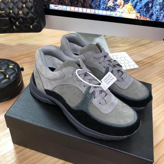 高級ファッションシューズ ブラック グレー 本革 スエード カーフスキン ロー レースアップ スニーカー ランナー トレーナー