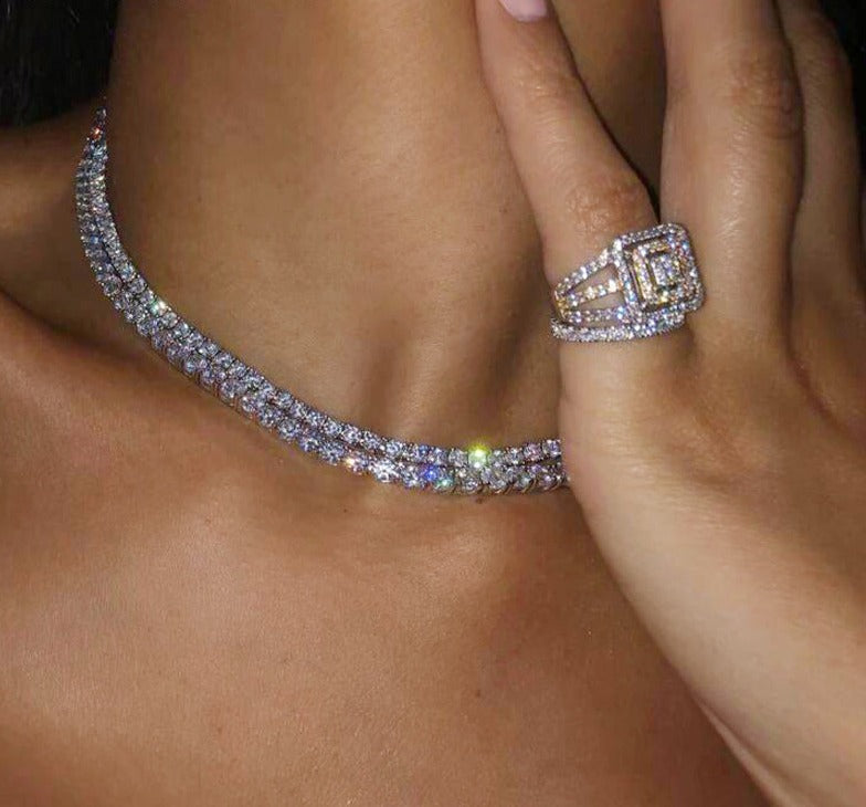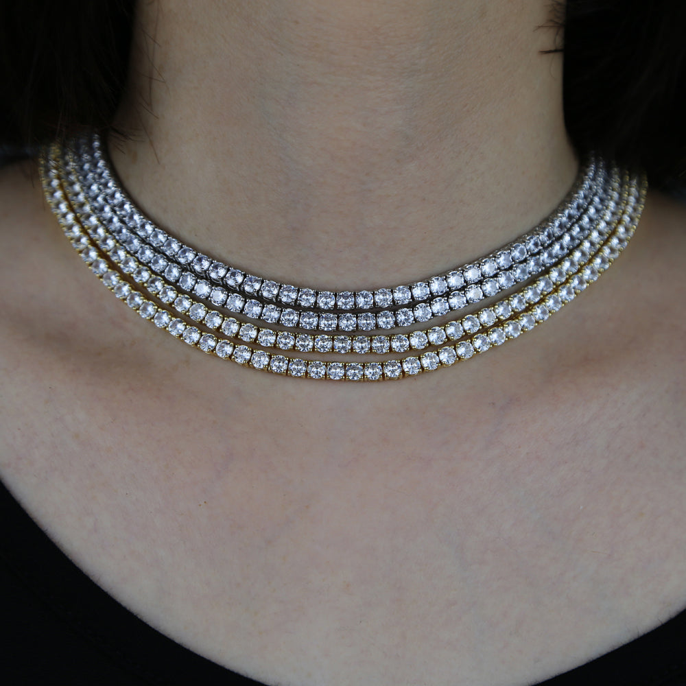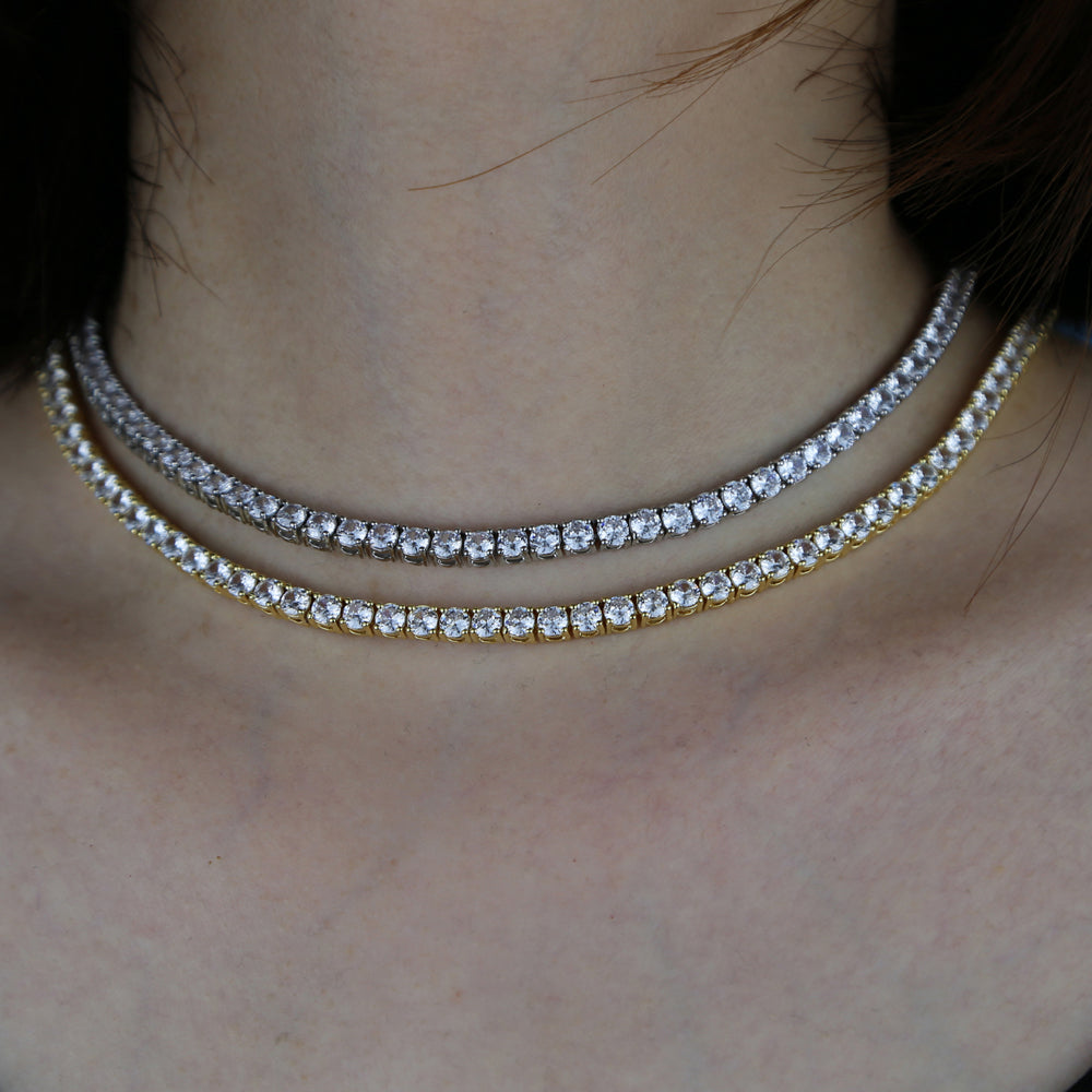 4mm アイスアウト キラキラ CZ テニスネックレス レディース ヒップホップ 5A キュービックジルコニア 高級 エレガント チョーカー ウェディング エンゲージメント ジュエリー 15" 16"