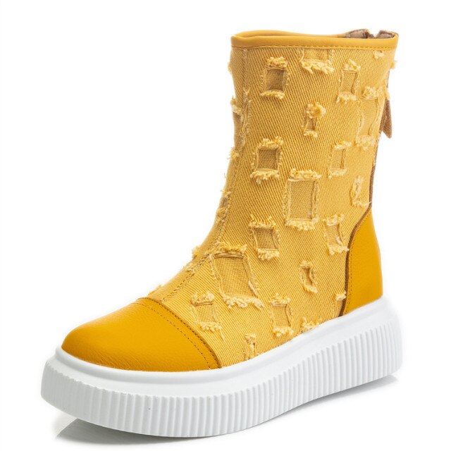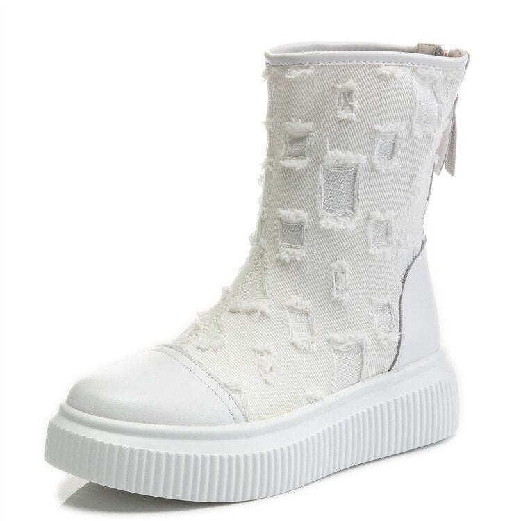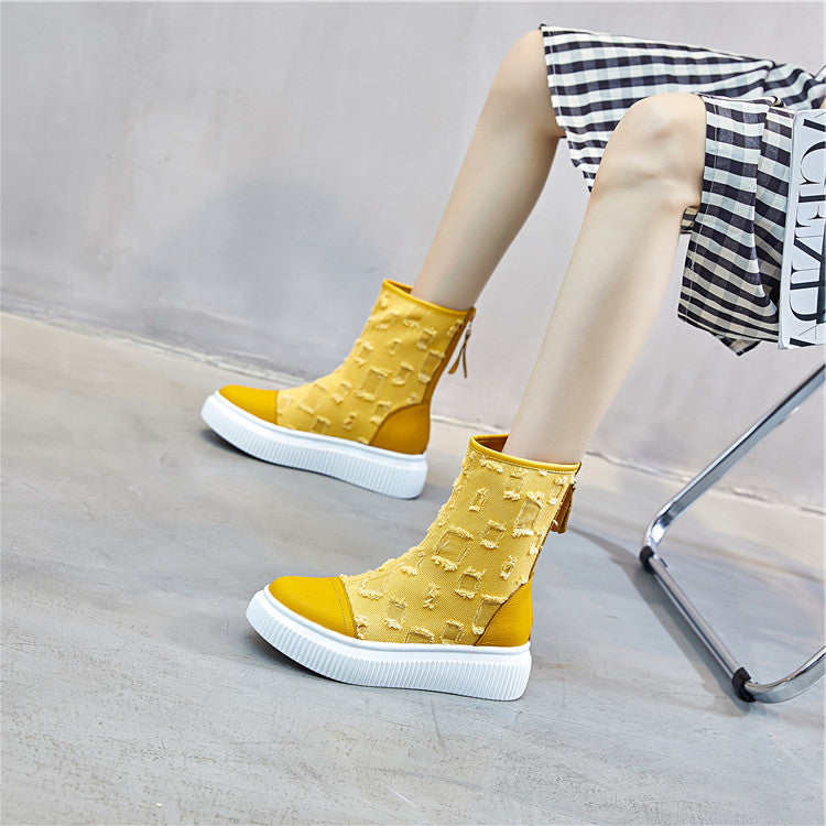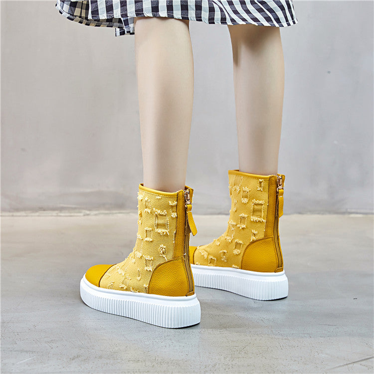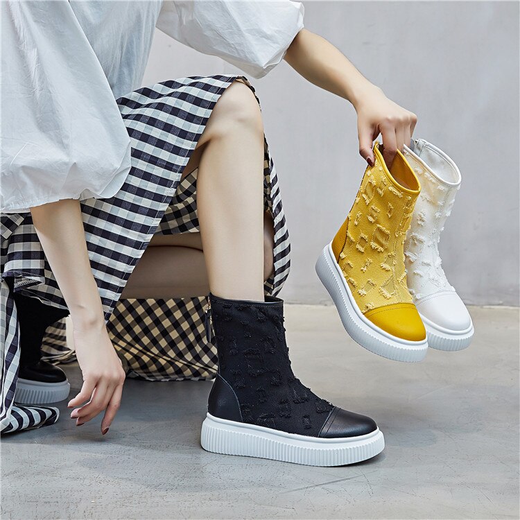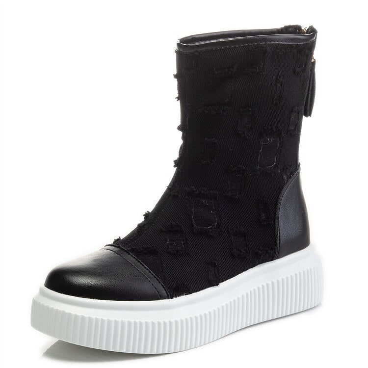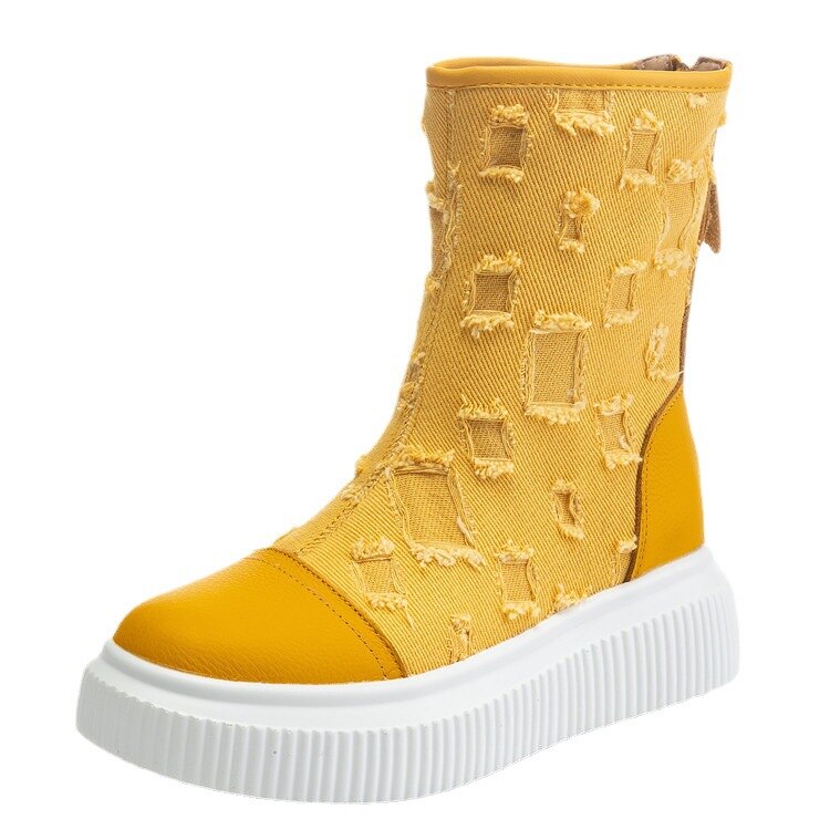 牛革厚底ブーツ キャンバス 通気性 レディースブーツ
