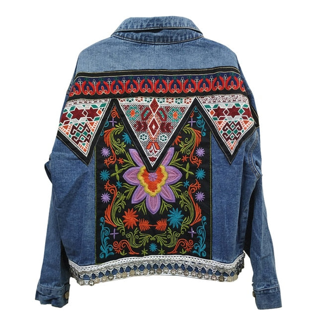 女性用ボヘミアンデニムジャケット ヴィンテージコート