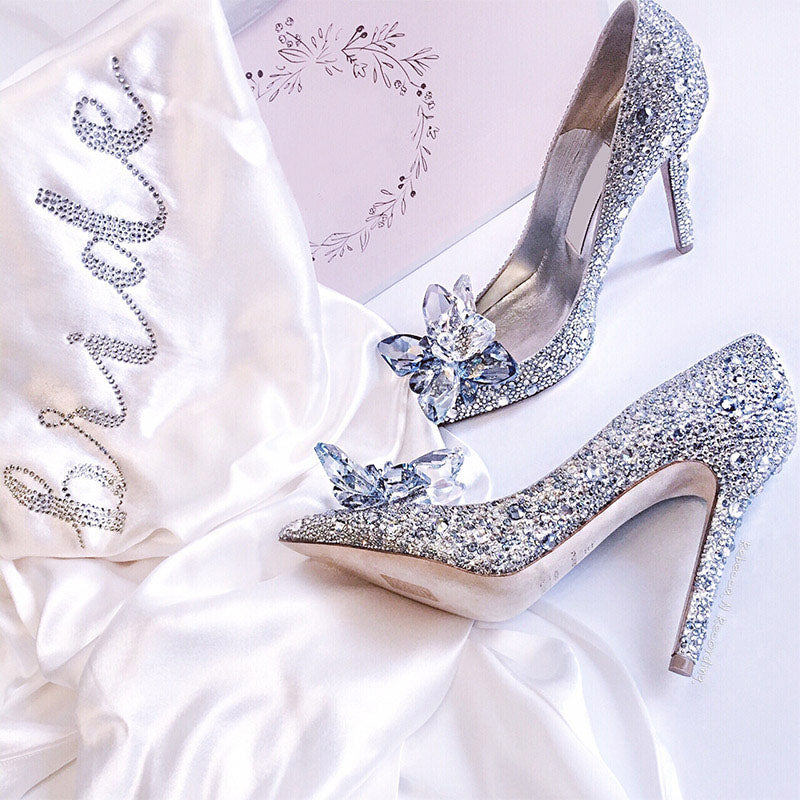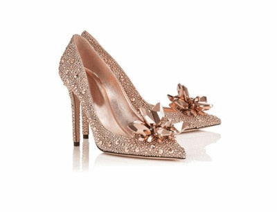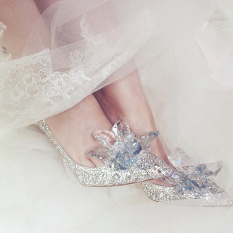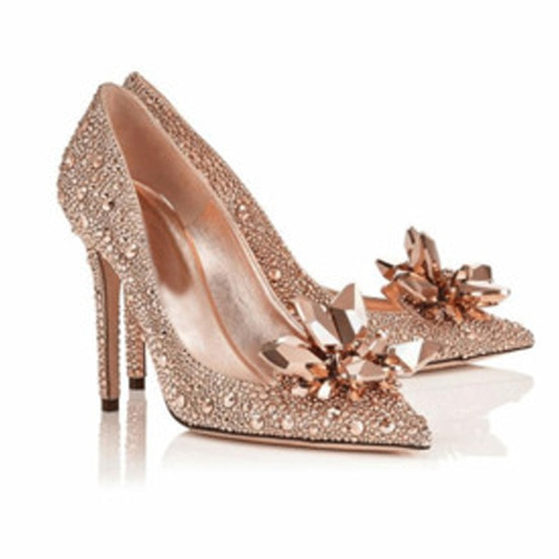 シンデレラ クリスタル ゴールド ドレス ブライダル シューズ シルバー ポインテッド ウェディング シューズ