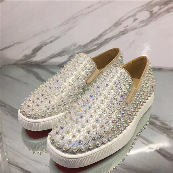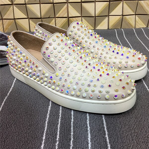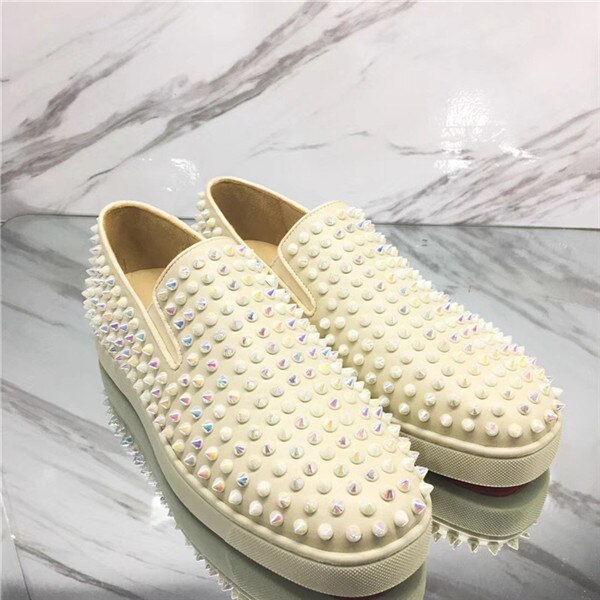 カラフルなロートップリベットスタッズレディースローファーランウェイスリップオンラウンドグラディエーターシューズピンク本革カジュアルシューズフラット