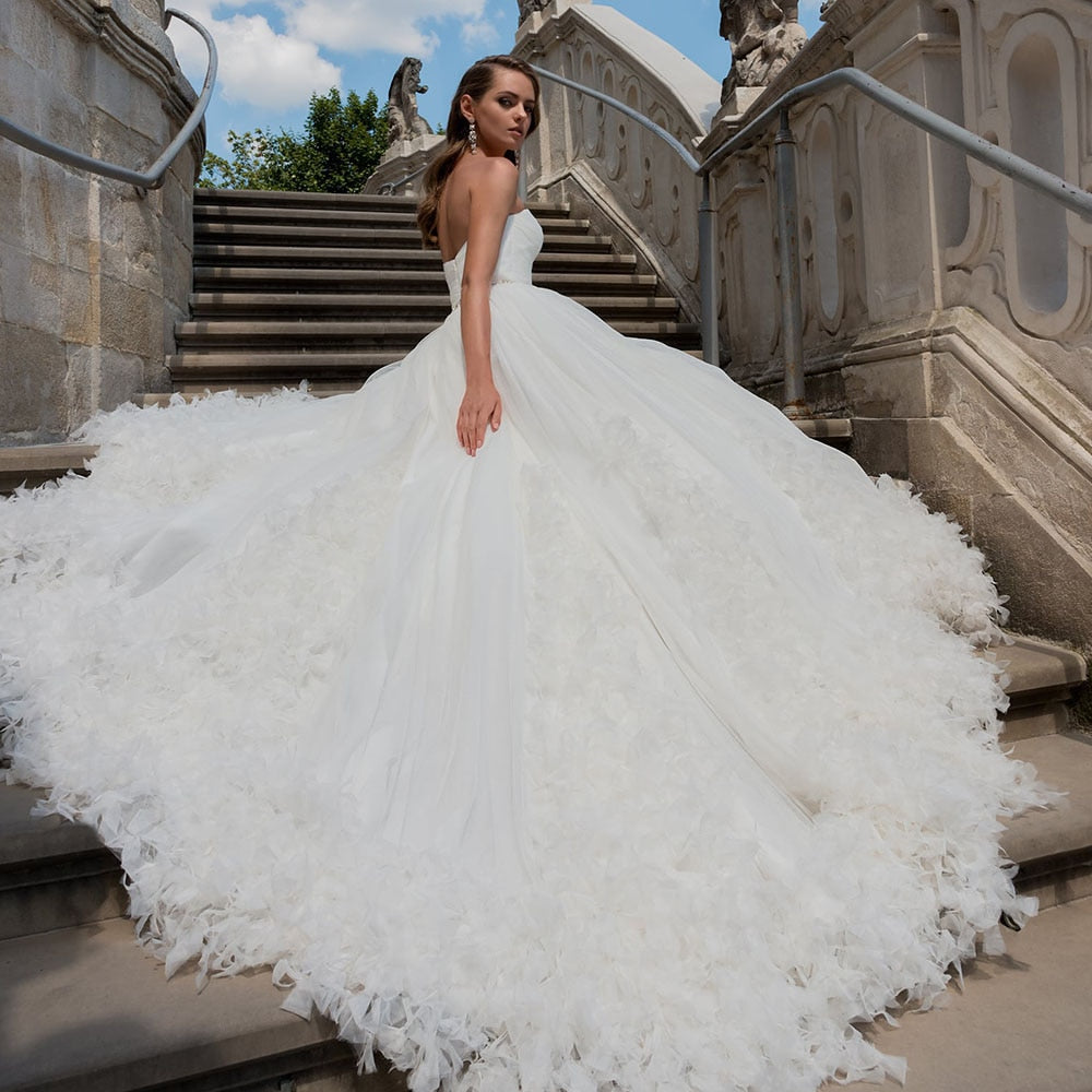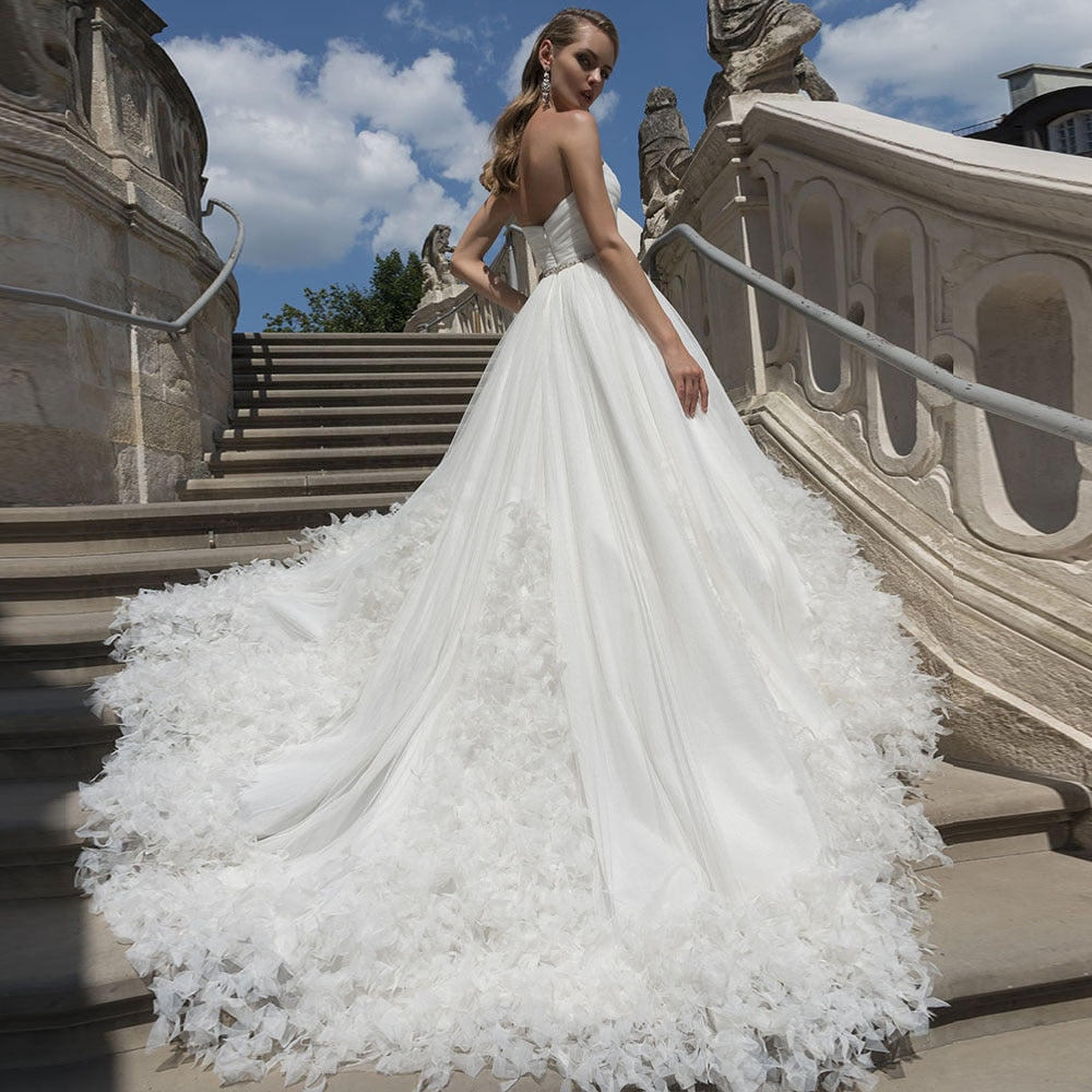 クリスタルウエストプリーツフラワープリンセスウェディングドレスプラスサイズVestido De Casamentoスウィートハートネックバックレスホワイトブライダルガウン