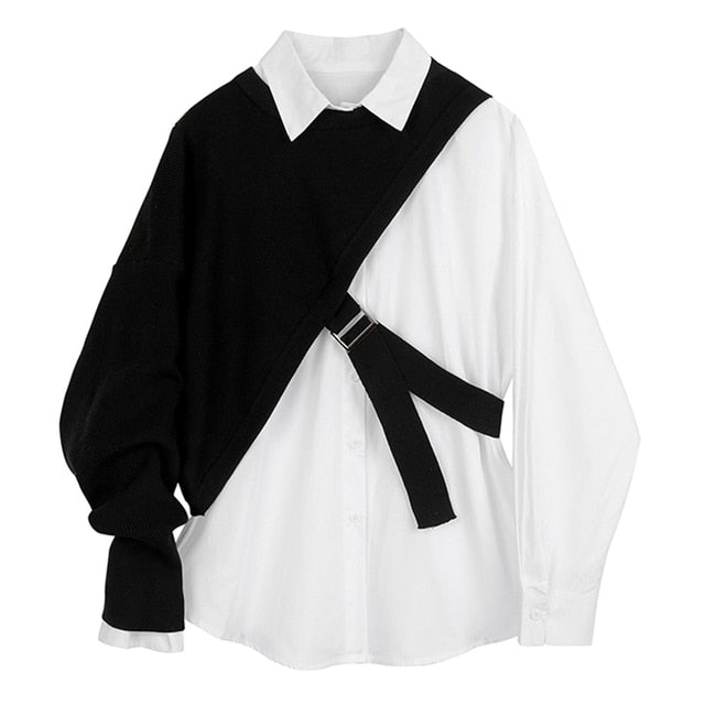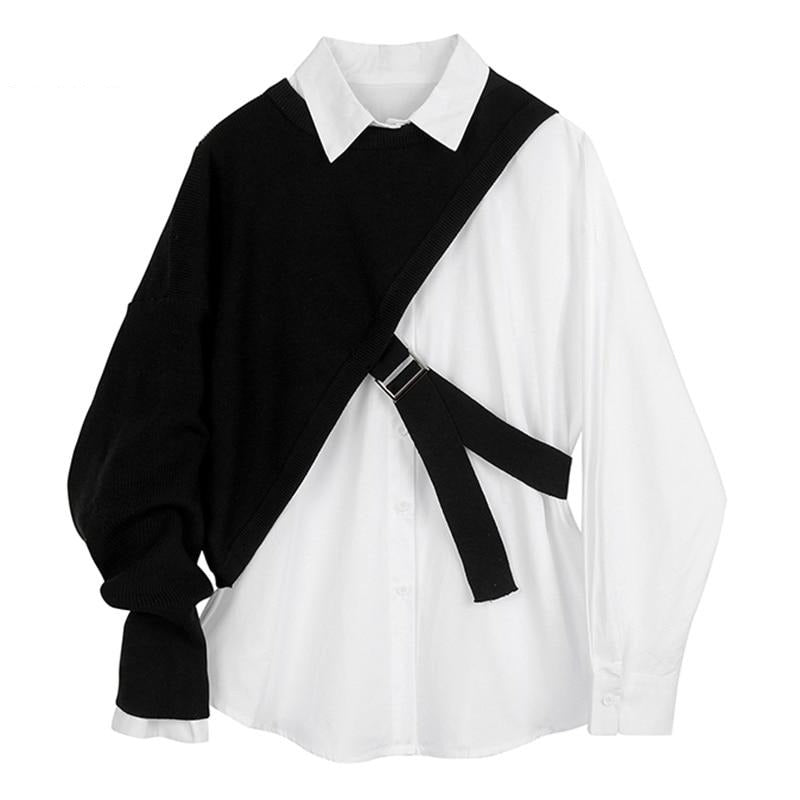 レディース ホワイト ニット スプリット ビッグサイズ ブラウス