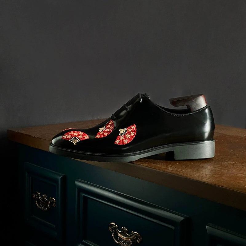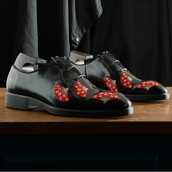 Embroidered leather shoes Chinese style orange fan Oxford shoes cowhide formal gentleman's shoes