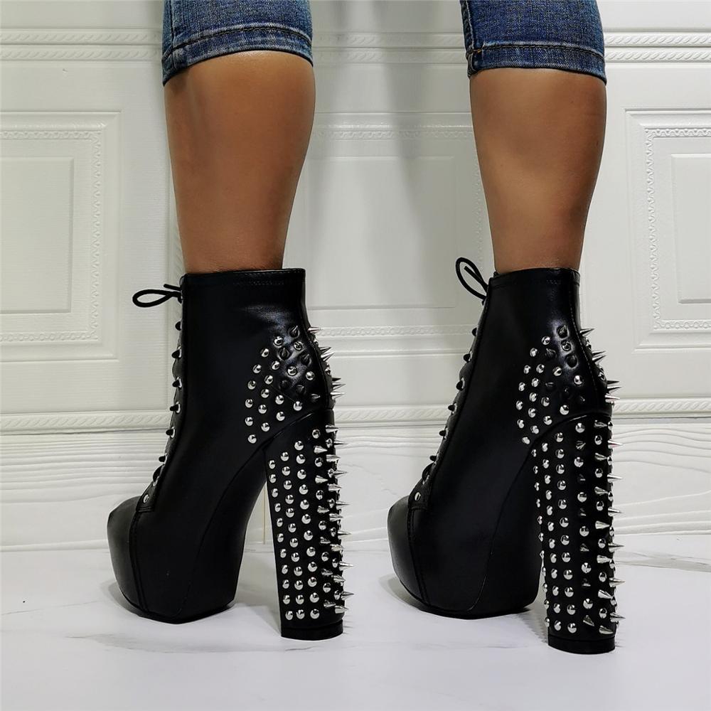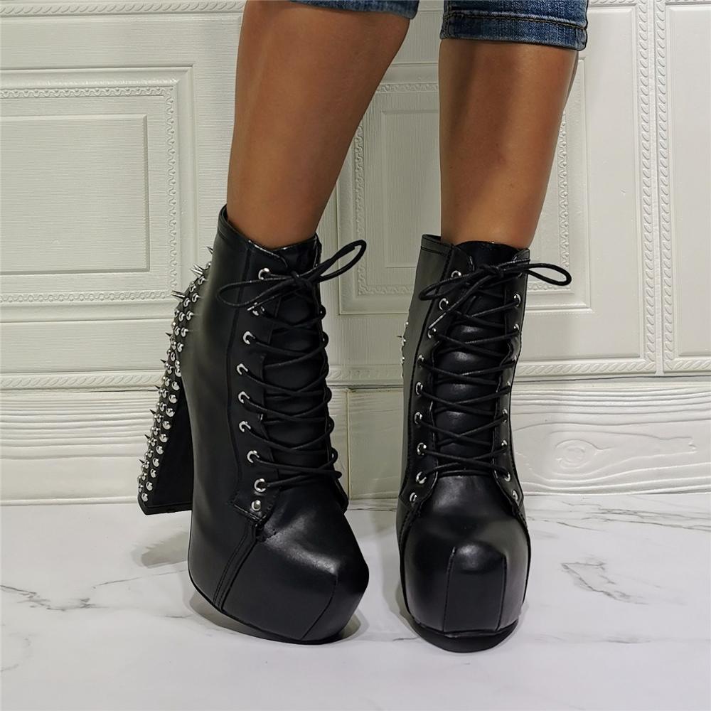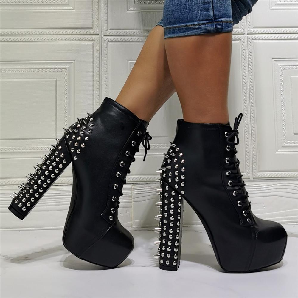 女性用リベット飾りハイヒール冬用ワークブーツ 大きいサイズ