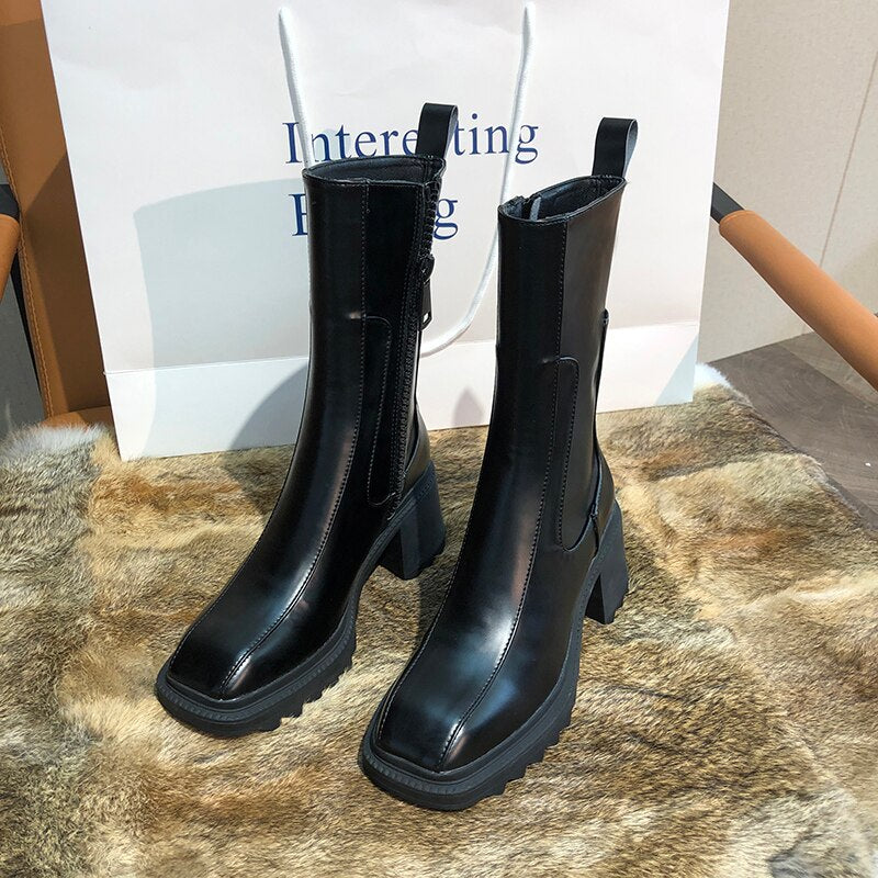 レディース プラットフォーム チャンキーヒール チェルシーブーツ