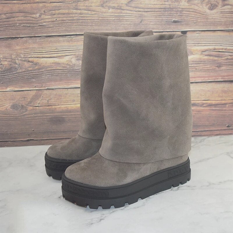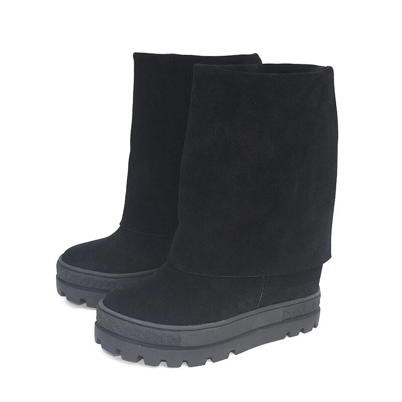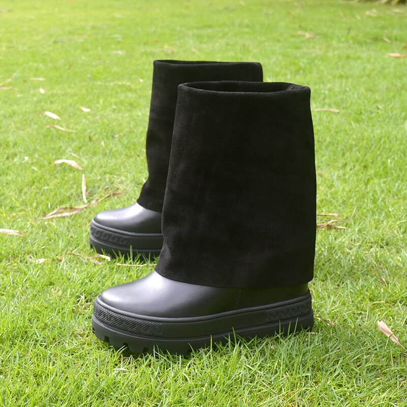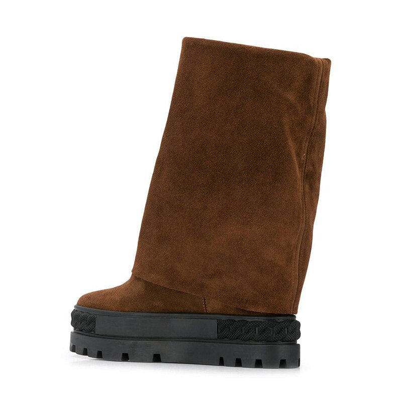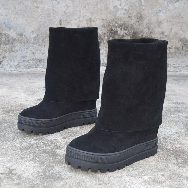 女性用 隠しプラットフォーム 2 ミッドカーフブーツを履く