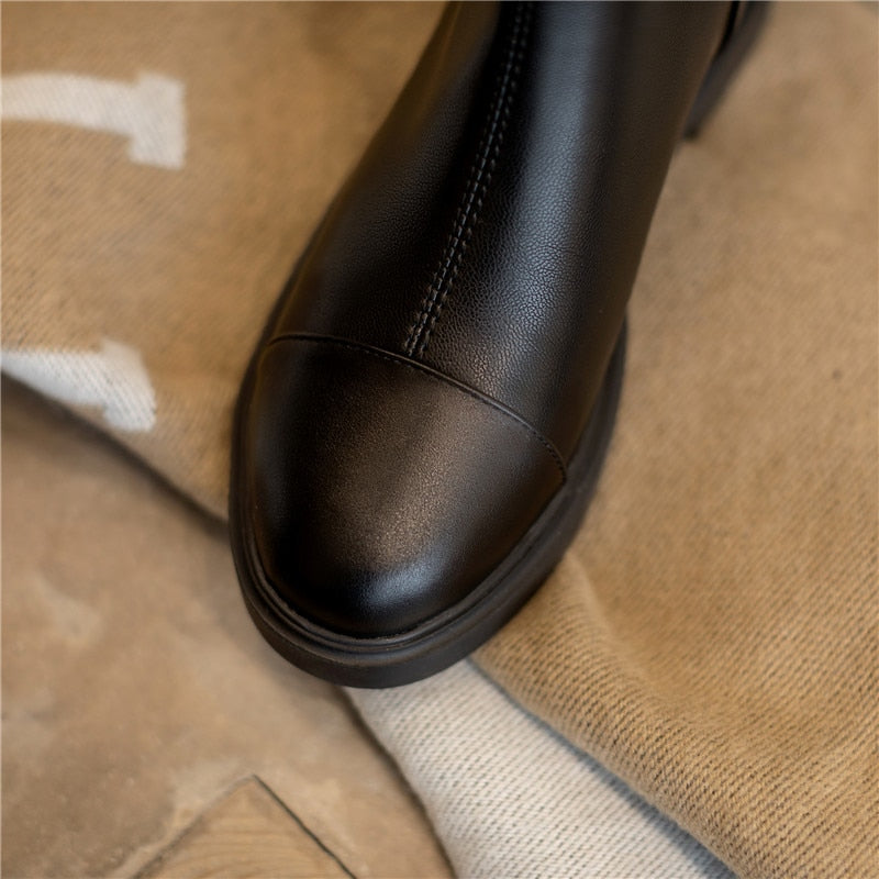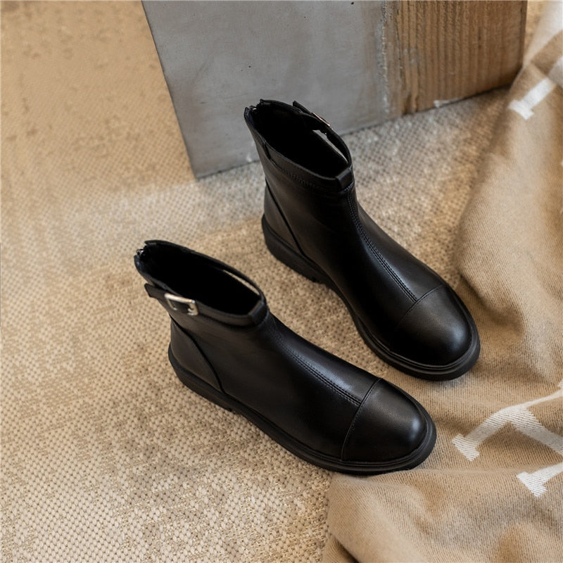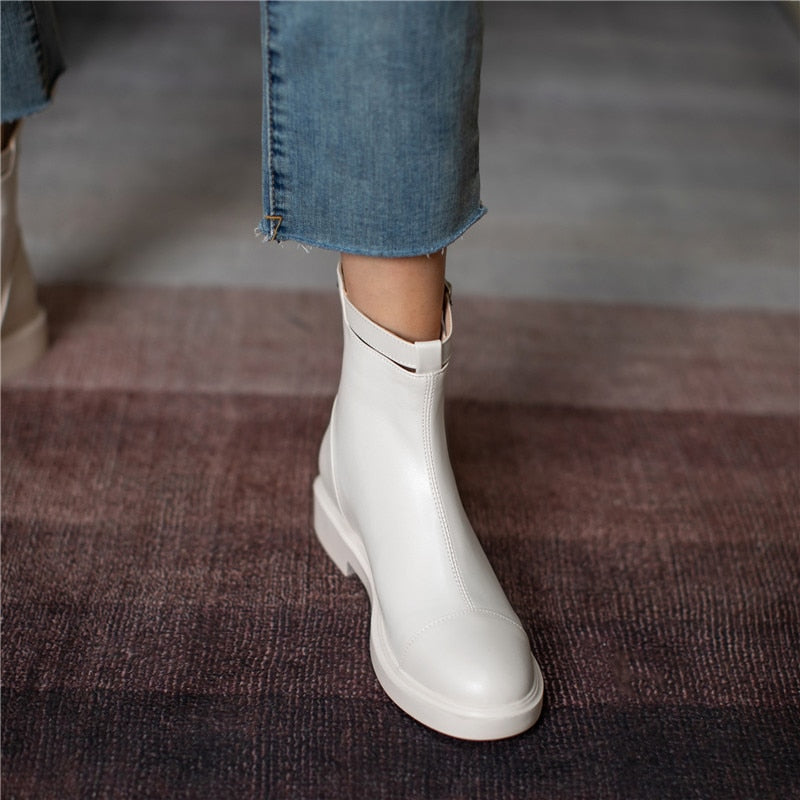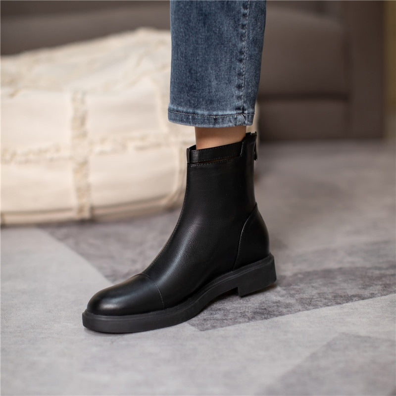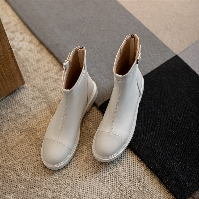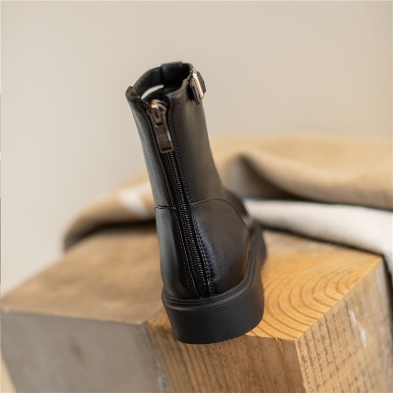 女性用アンクルブーツ ジッパー 簡潔なデザイナー 厚底ヒールシューズ