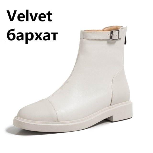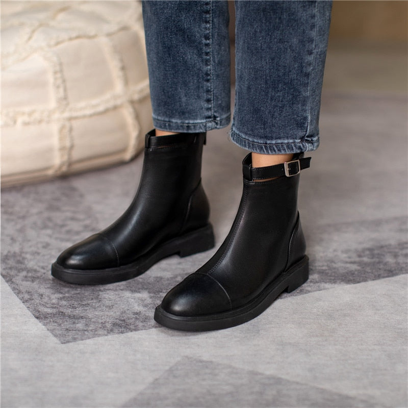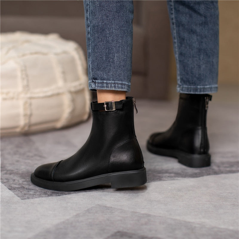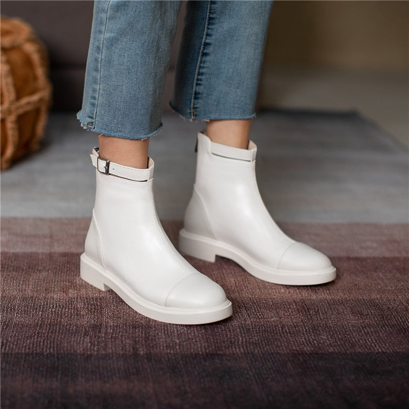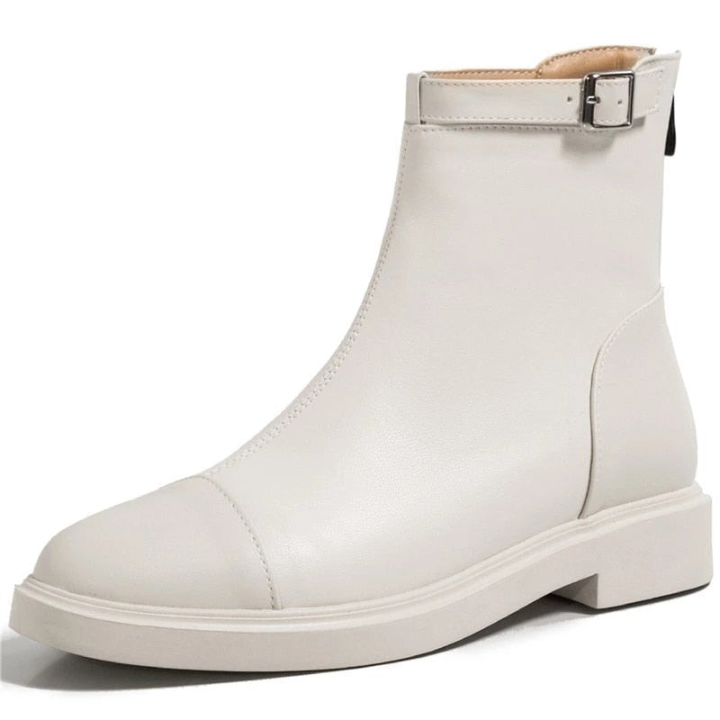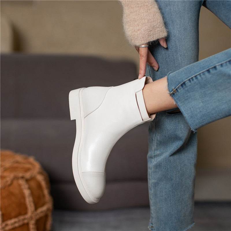 女性用アンクルブーツ ジッパー 簡潔なデザイナー 厚底ヒールシューズ