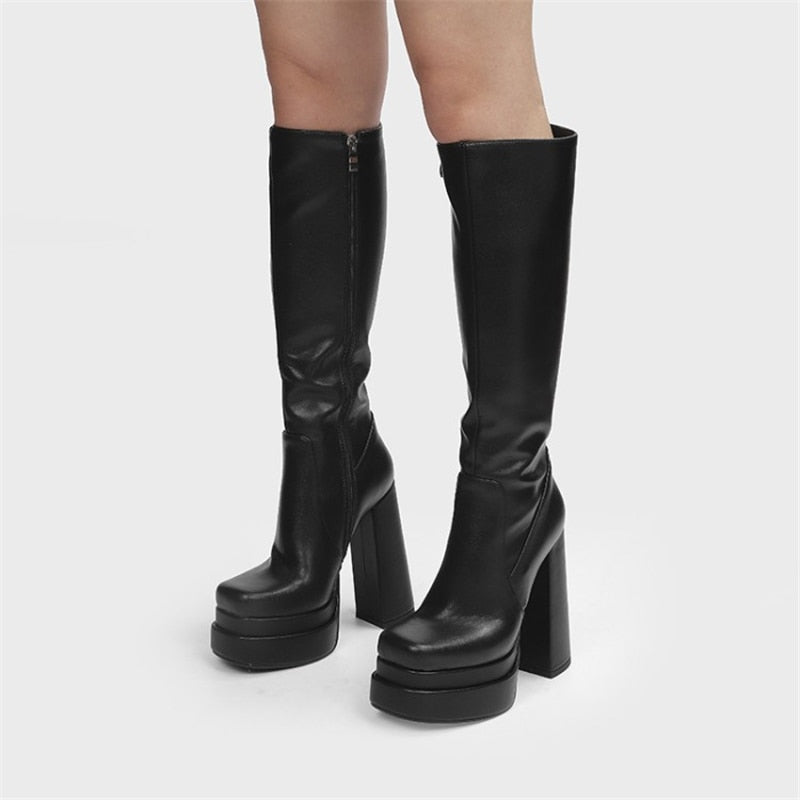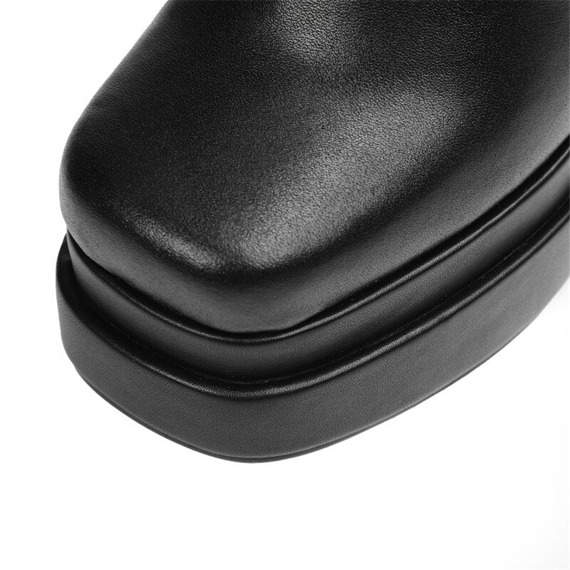 女性用 ダブルレイヤー プラットフォーム スクエアトゥ ビッグサイズ ブーツ