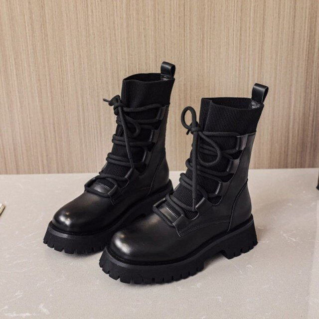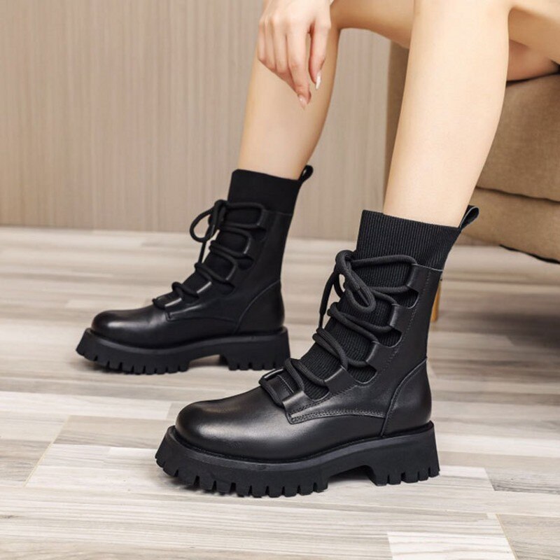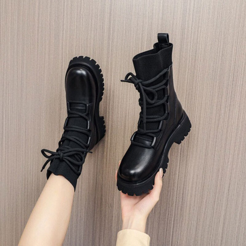 英国スタイルの厚底エレガントソリッドヴィンテージファッション女性用ブーツ