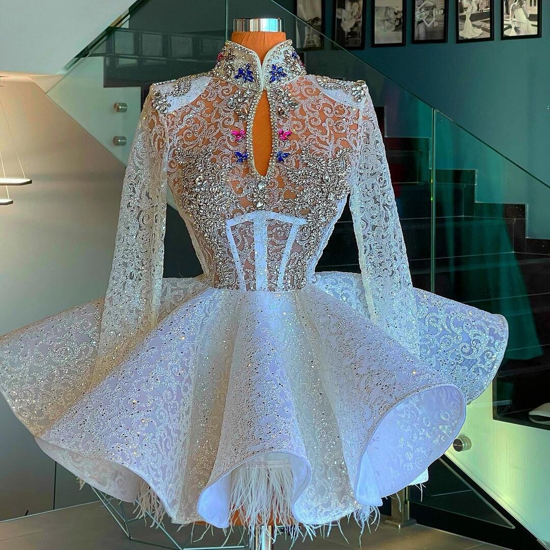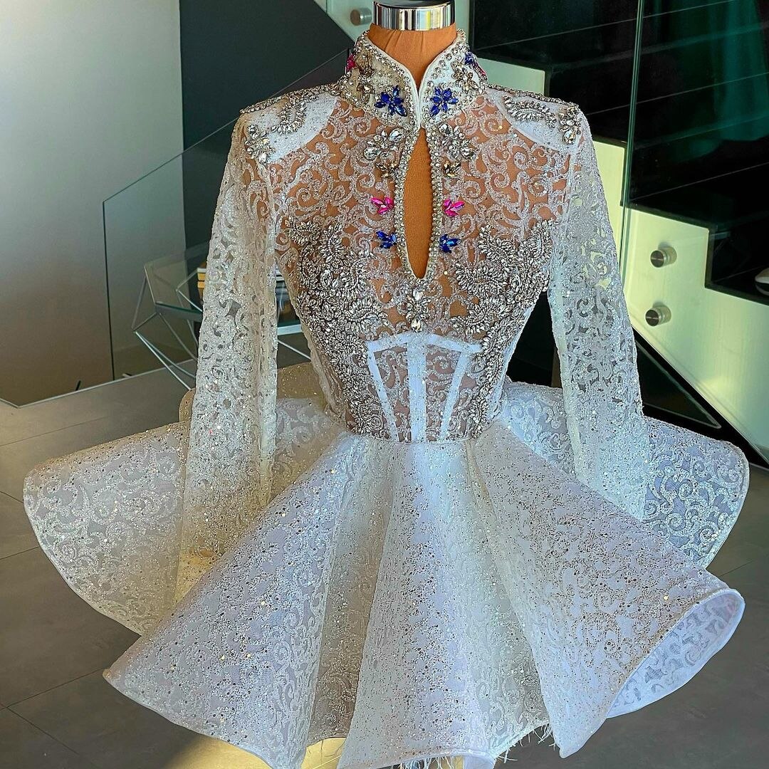 キラキラの高級ショートプロムドレス 長袖