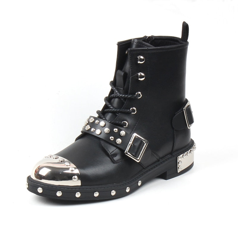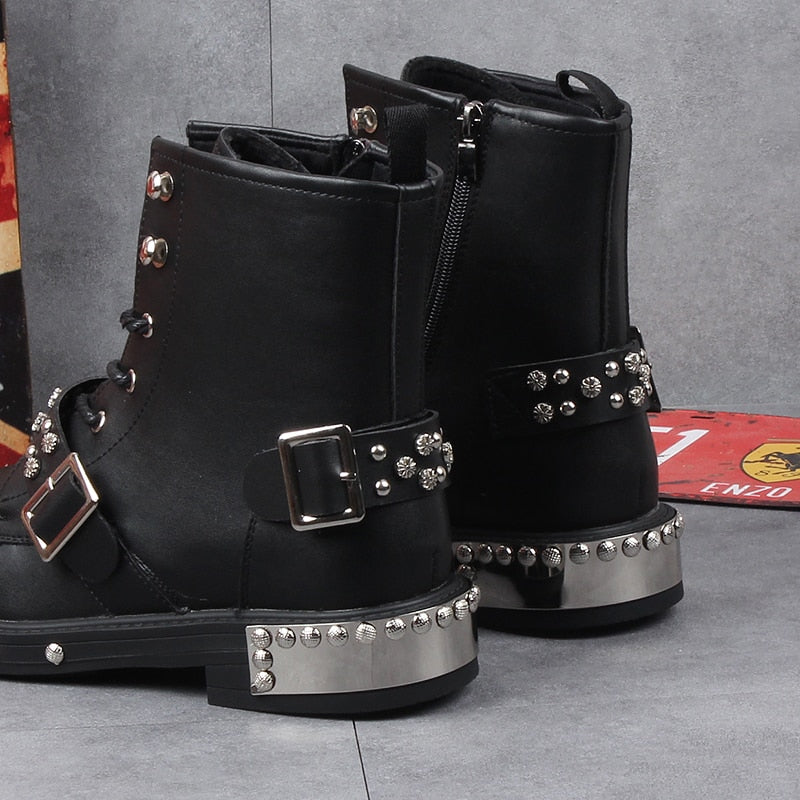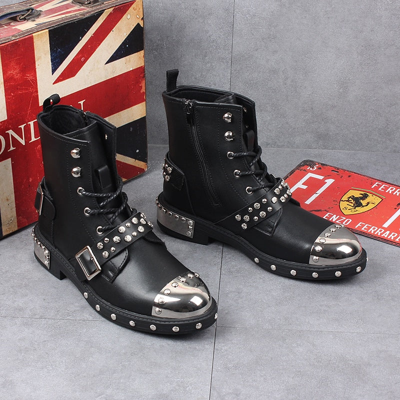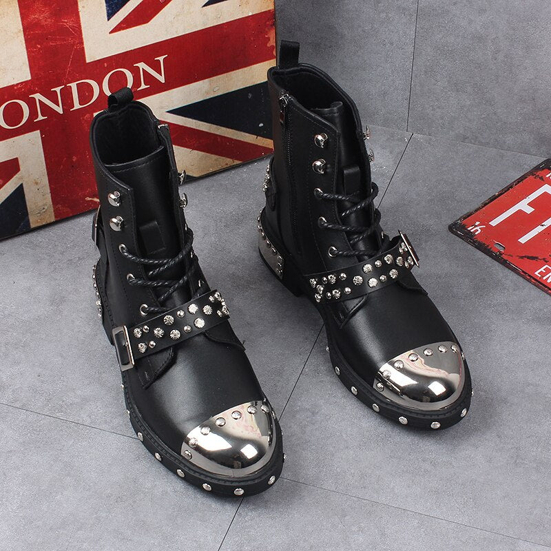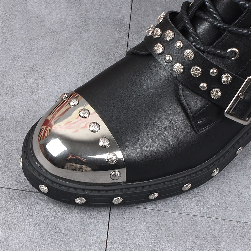 メンズカジュアルリベットシューズレースアッププラットフォームブーツ