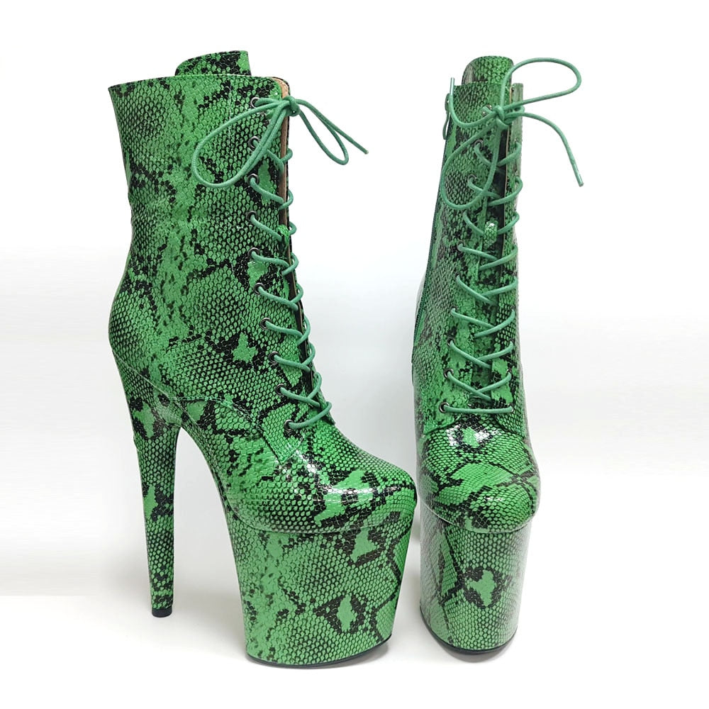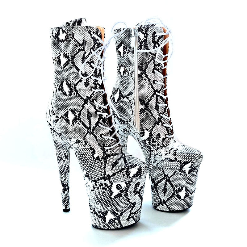 ハイヒールプラットフォームブーツ スネークスキン素材カバー