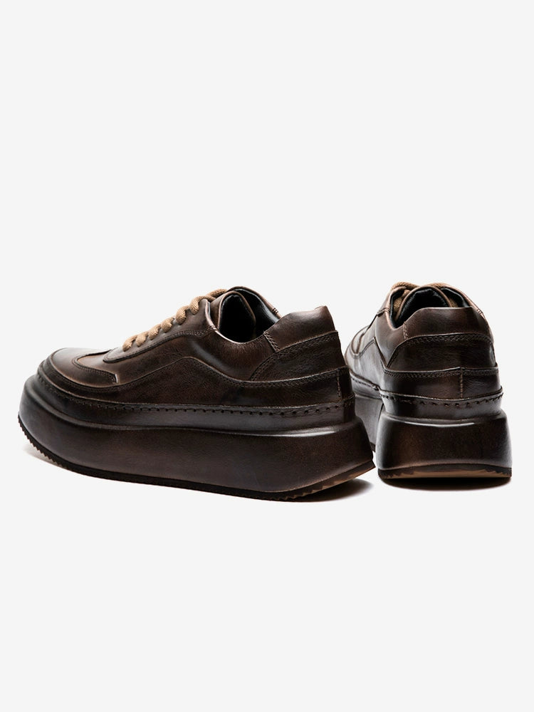 Inner heightening casual leather shoes men's genuine leather lace-up retro dad shoes thick sole first layer cowhide handmade