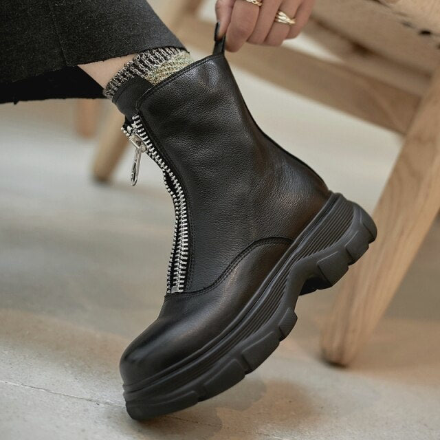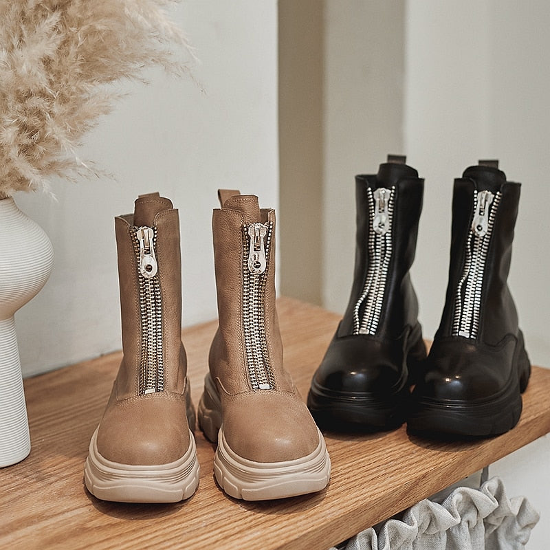 INS HOT レディース アンクルブーツ 牛革アッパーシューズ
