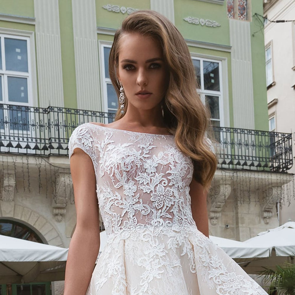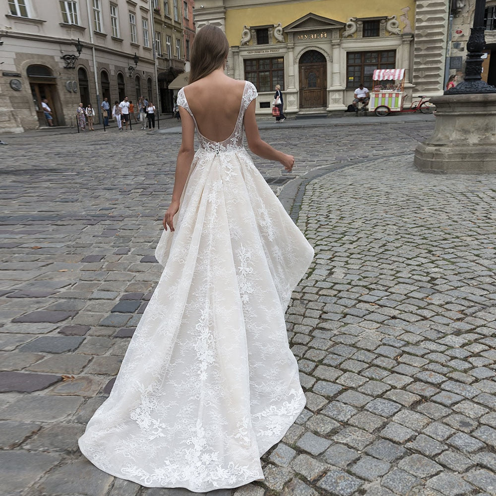 ポケット付きレースハイロングウェディングドレス