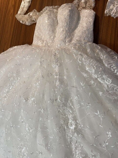 ロングスリーブのセクシーなバックロイヤルトレインブライダルドレス