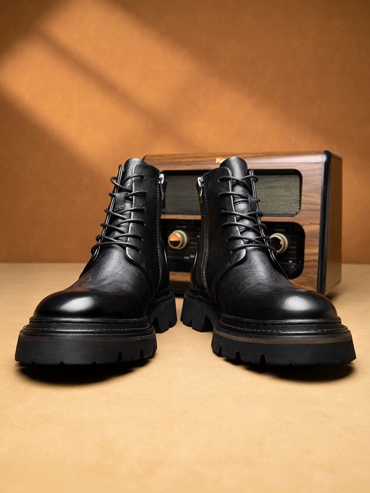 Martin boots men's leather heightening handmade zipper retro wind turbine boots men's short boots cowhide