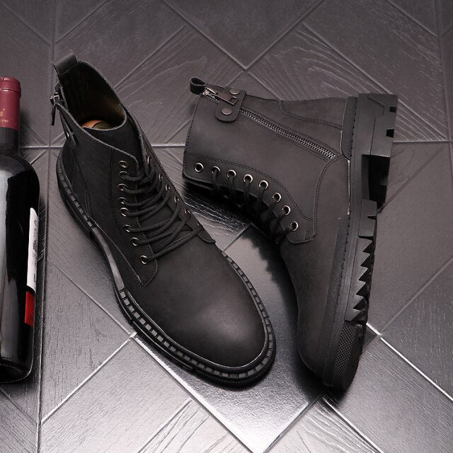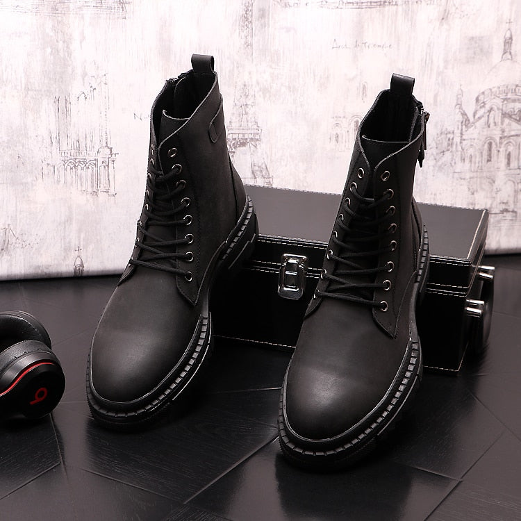 メンズ レジャー プラットフォーム ブーツ 牛革