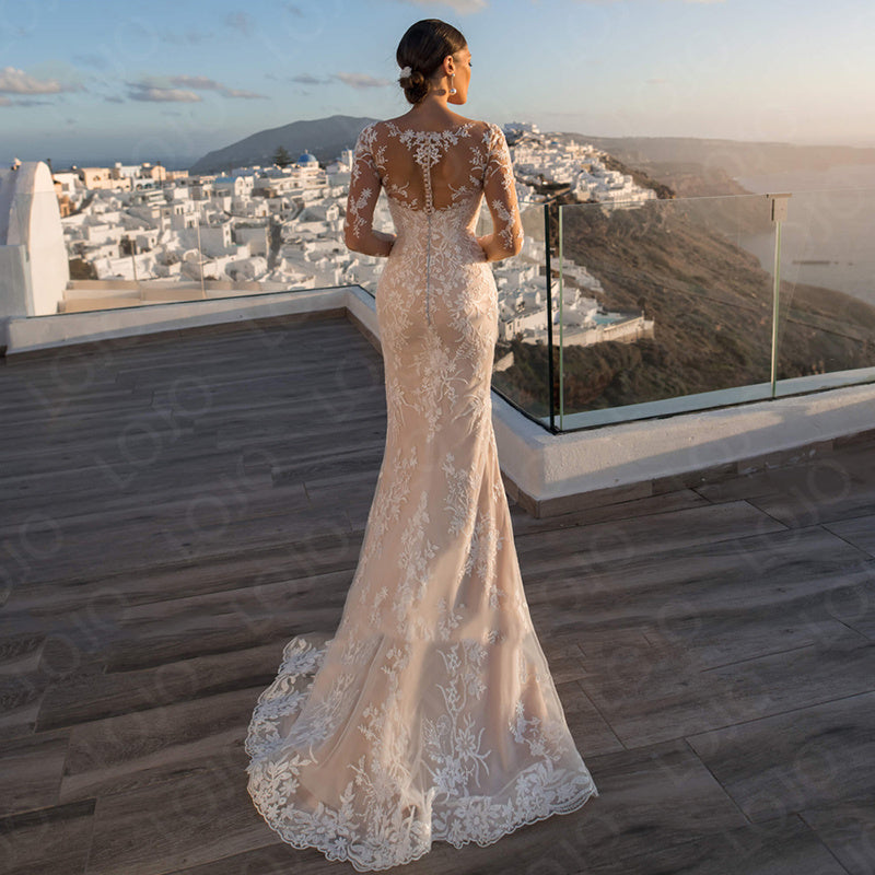 マーメイドウェディングドレス ボタン取り外し可能 トレーン レース