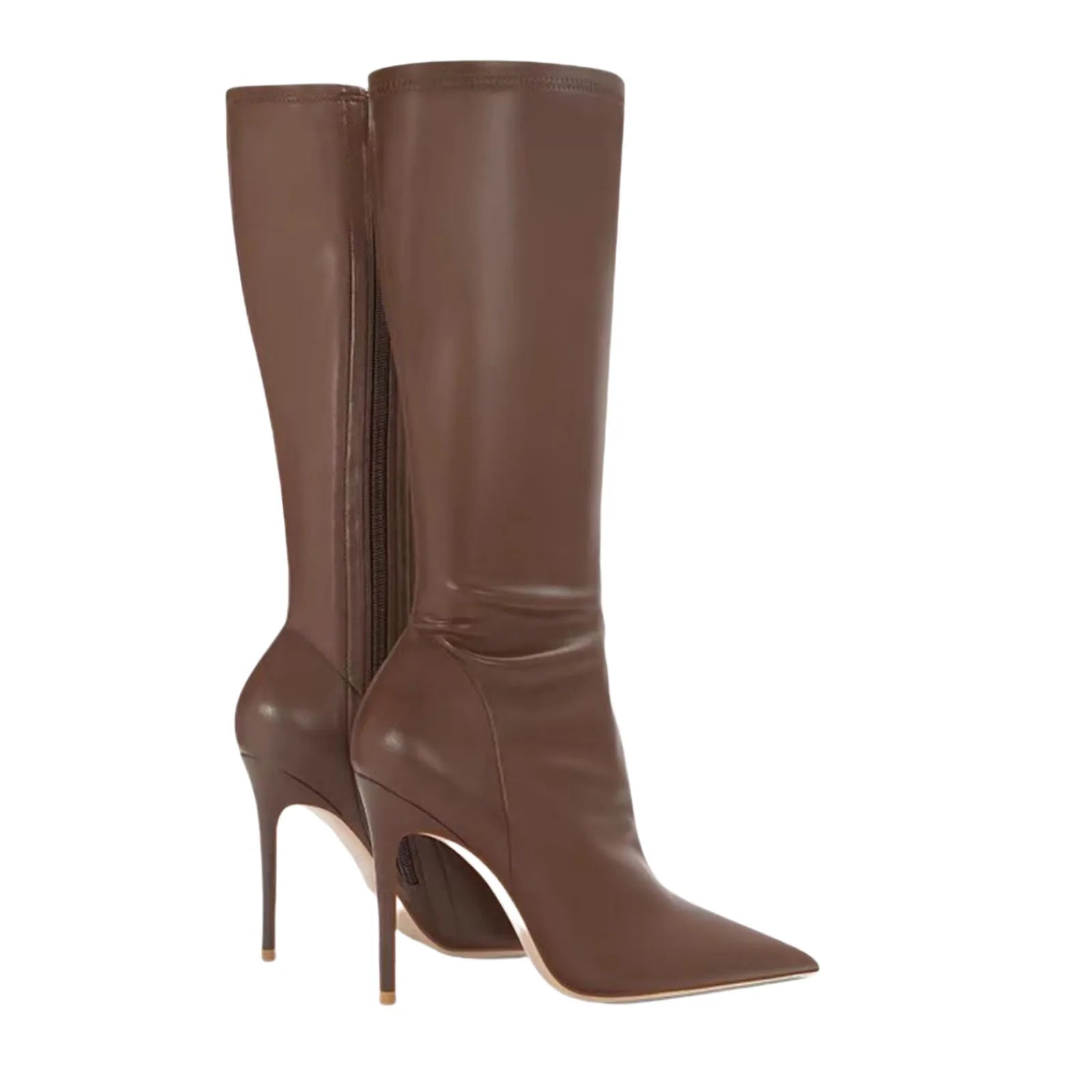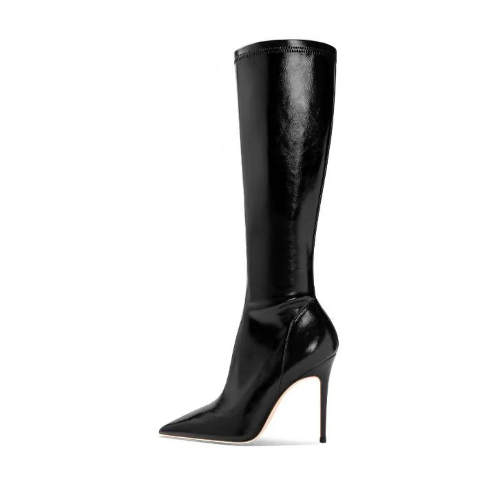 Mid-Calf boots Pointed toe Sidek zipper Super high heel Modern boots Simple style Skinny boots