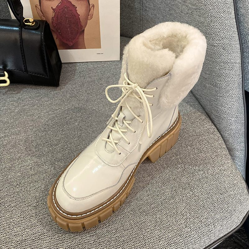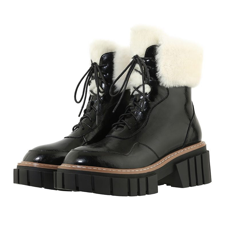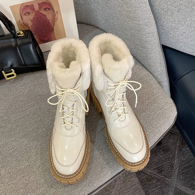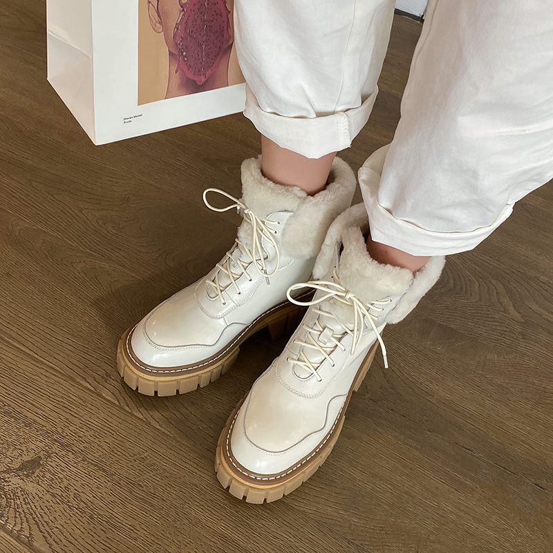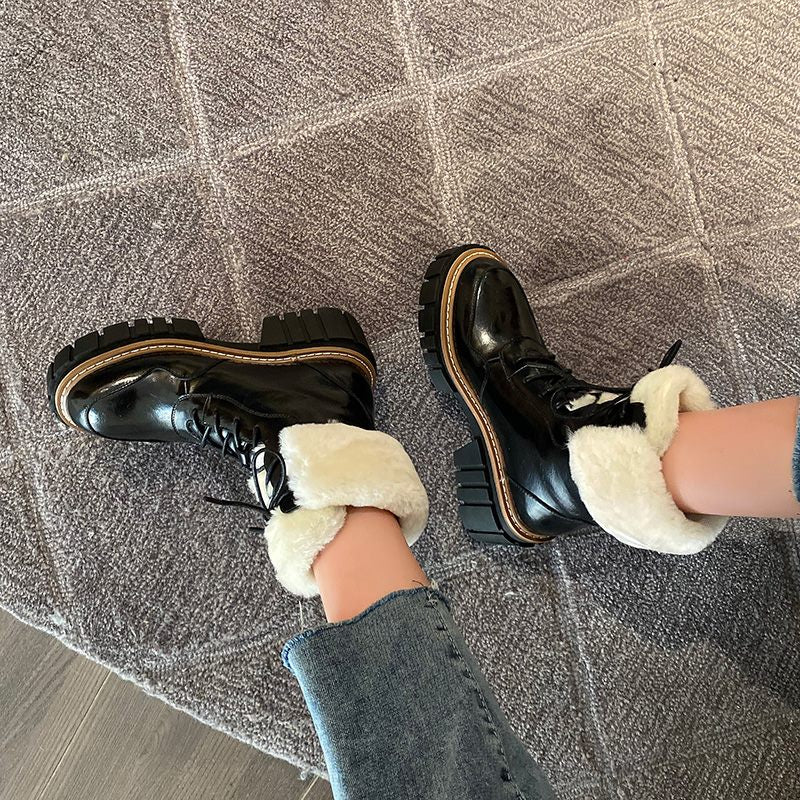 レディース レースアップ プラットフォーム アンクルブーツ 厚手ファー