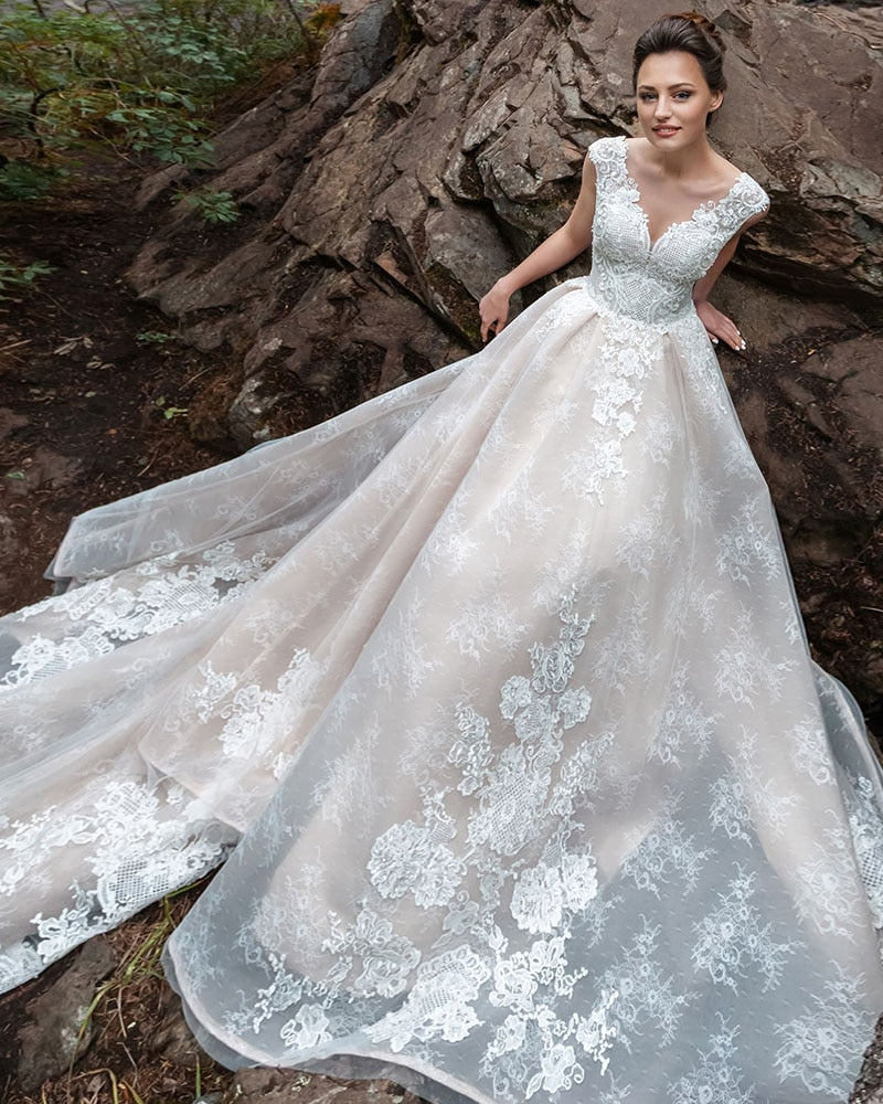 新着 ビーズアップリケ レース ウェディングドレス Vestidos De Novia Renda エレガントなブライダルガウン プラスサイズ