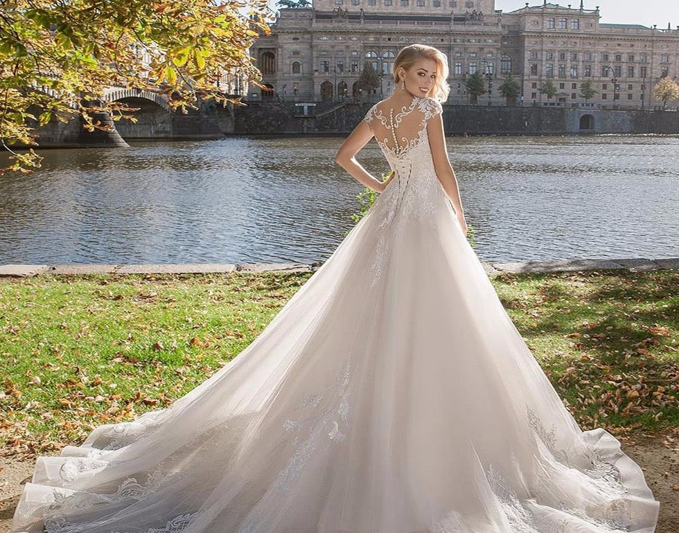 プリンセス A ライン ウェディングドレス Vestido De Noiva Princesa O ネック キャップスリーブ ボタンアップ アップリケ チュール ブライダル ガウン プラスサイズ
