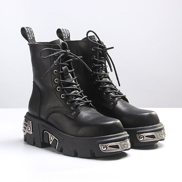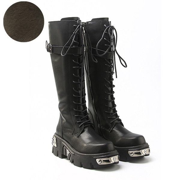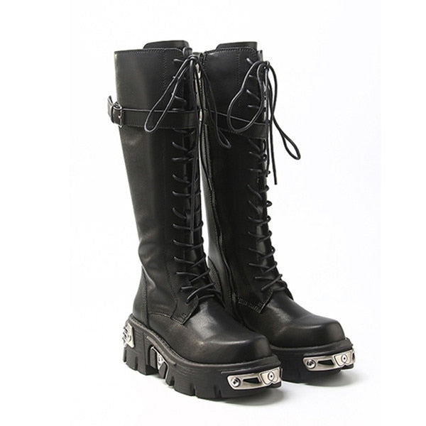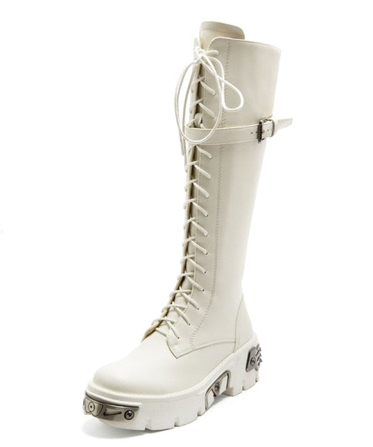 靴のデザイン:メタル装飾ハイブーツ
