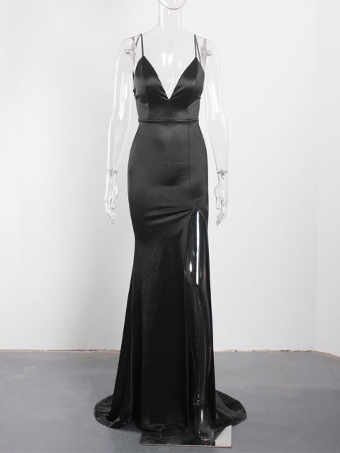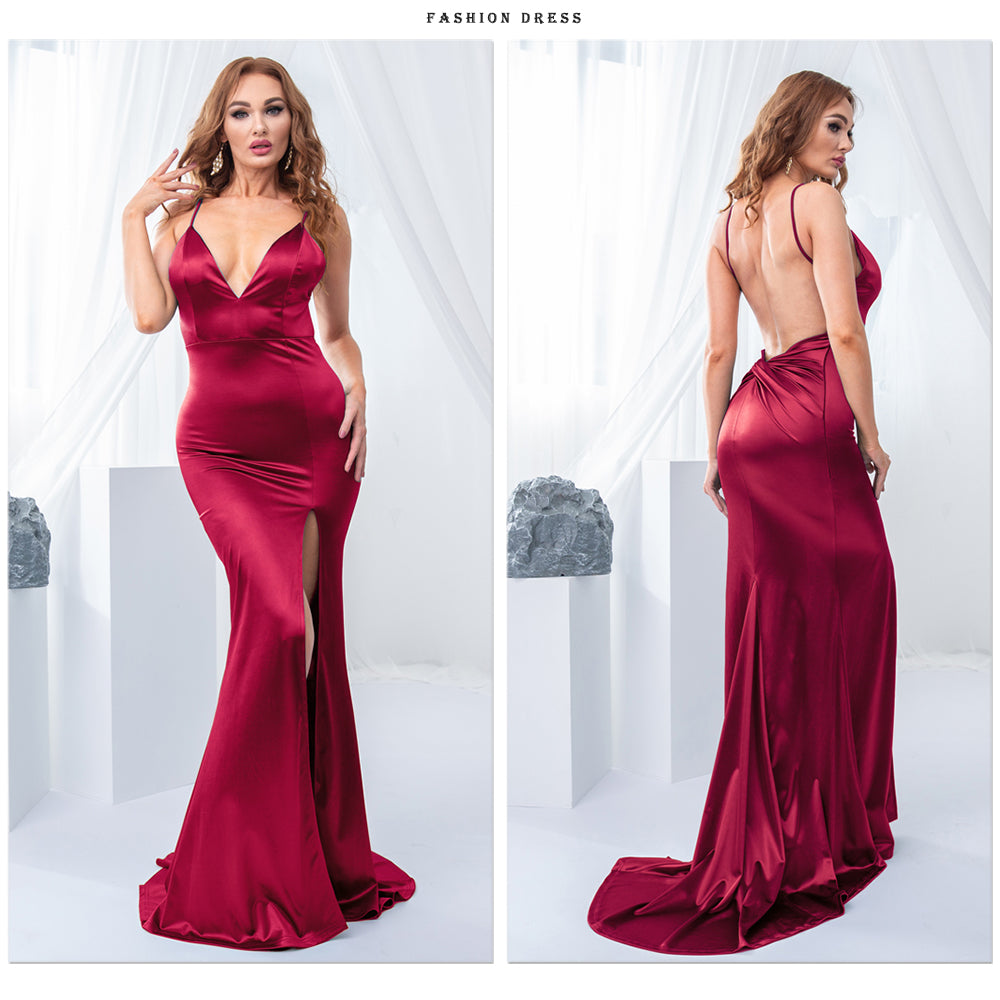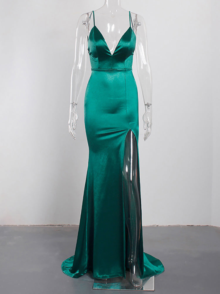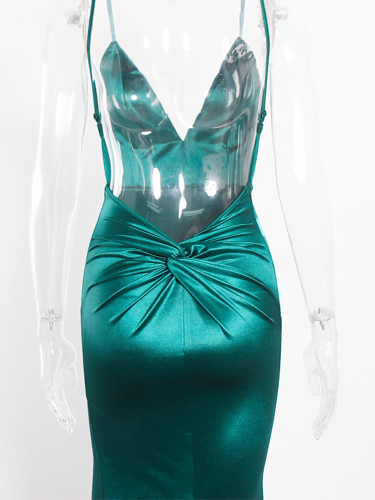 セクシーなエメラルドグリーンのバックレスマーメイドウェディングドレス、ディープVのイブニングドレス