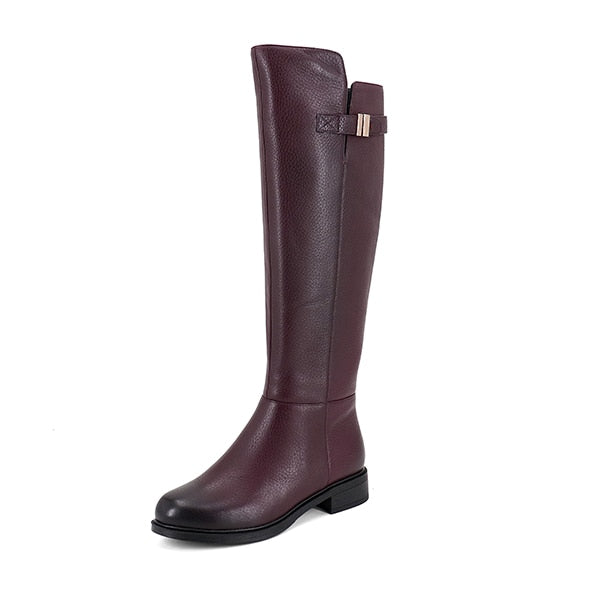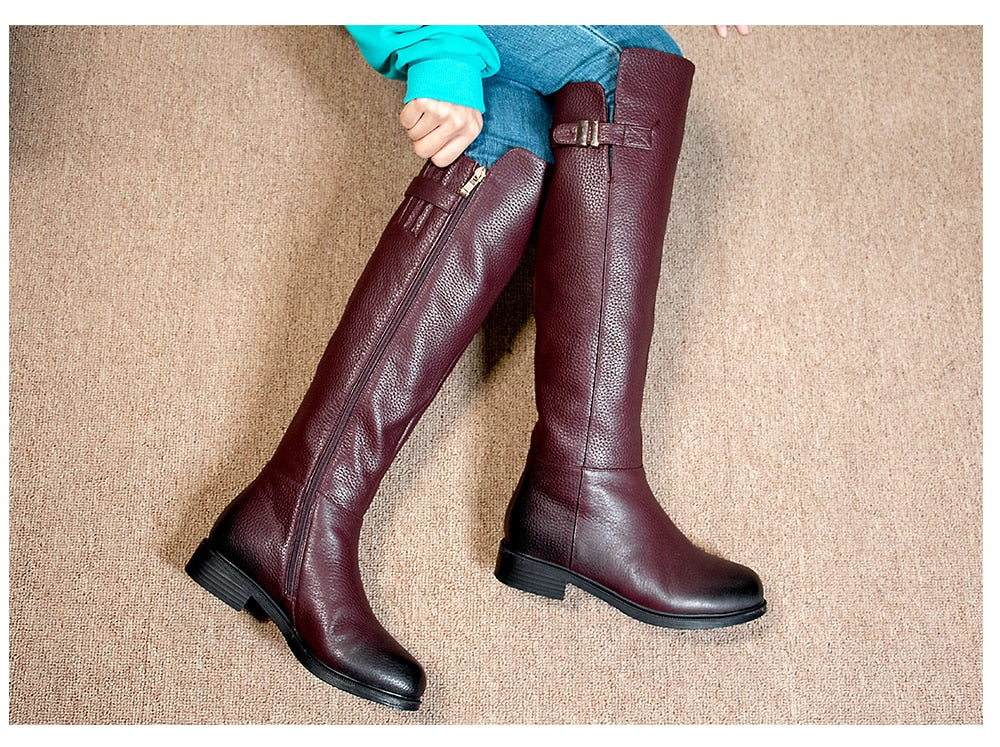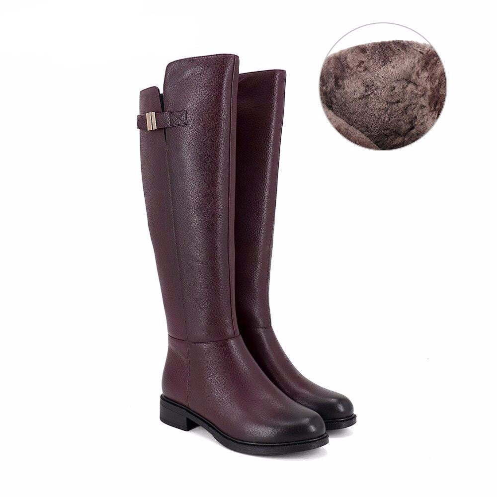特別デザインブーツ ニーハイ 暖かい ラウンドトゥ 本革 快適なスクエアヒールシューズ ウール レディースブーツ PC398
