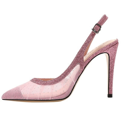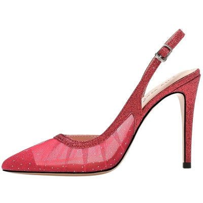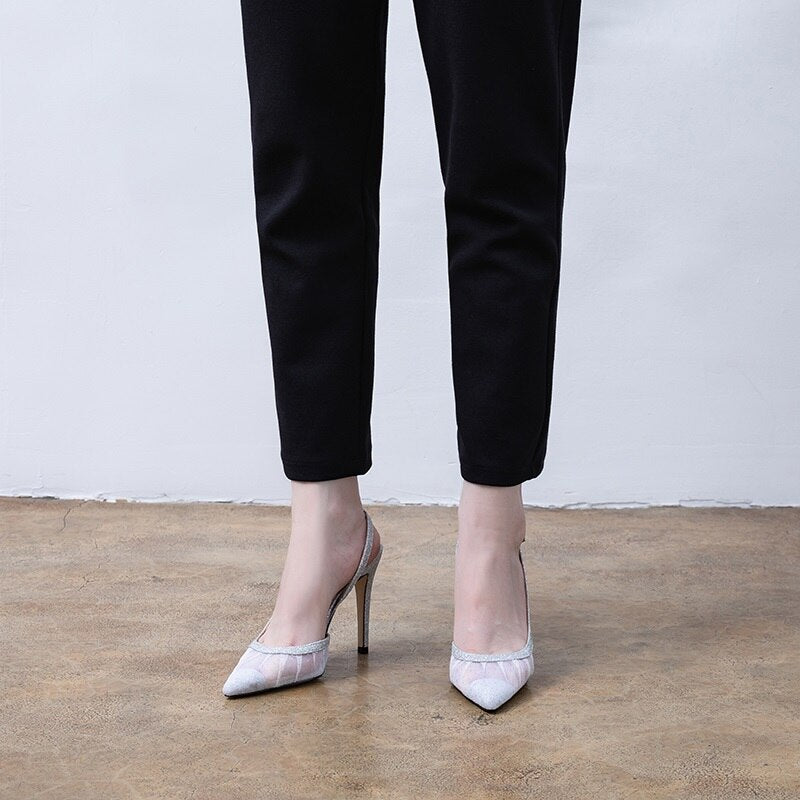 春のネット糸の尖ったつま先のスパンコールの花嫁の花嫁介添人のウェディングシューズ