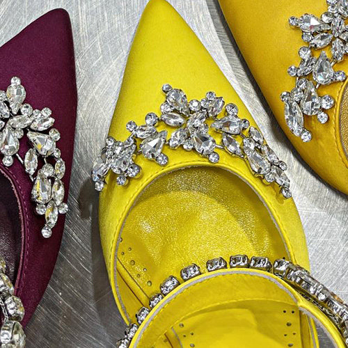 スティレットラインストーンシングルシューズサテンウェディングシューズスリッパ
