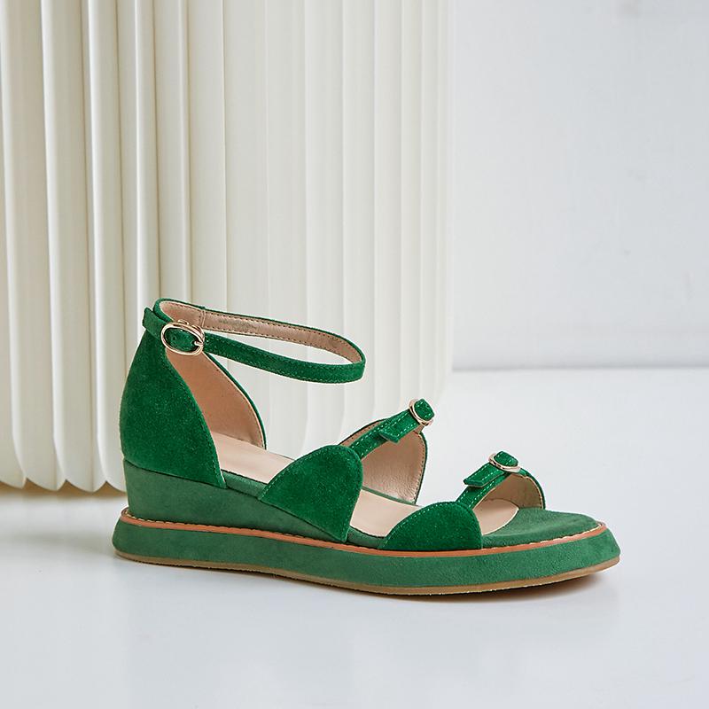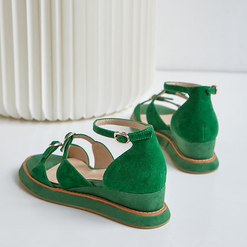 スーパースター キッド スエード バックル ストラップ ピープトゥ ハイヒール ウェッジ プラットフォーム レディース サンダル エレガント カバーヒール オフィス レディー サマー シューズ