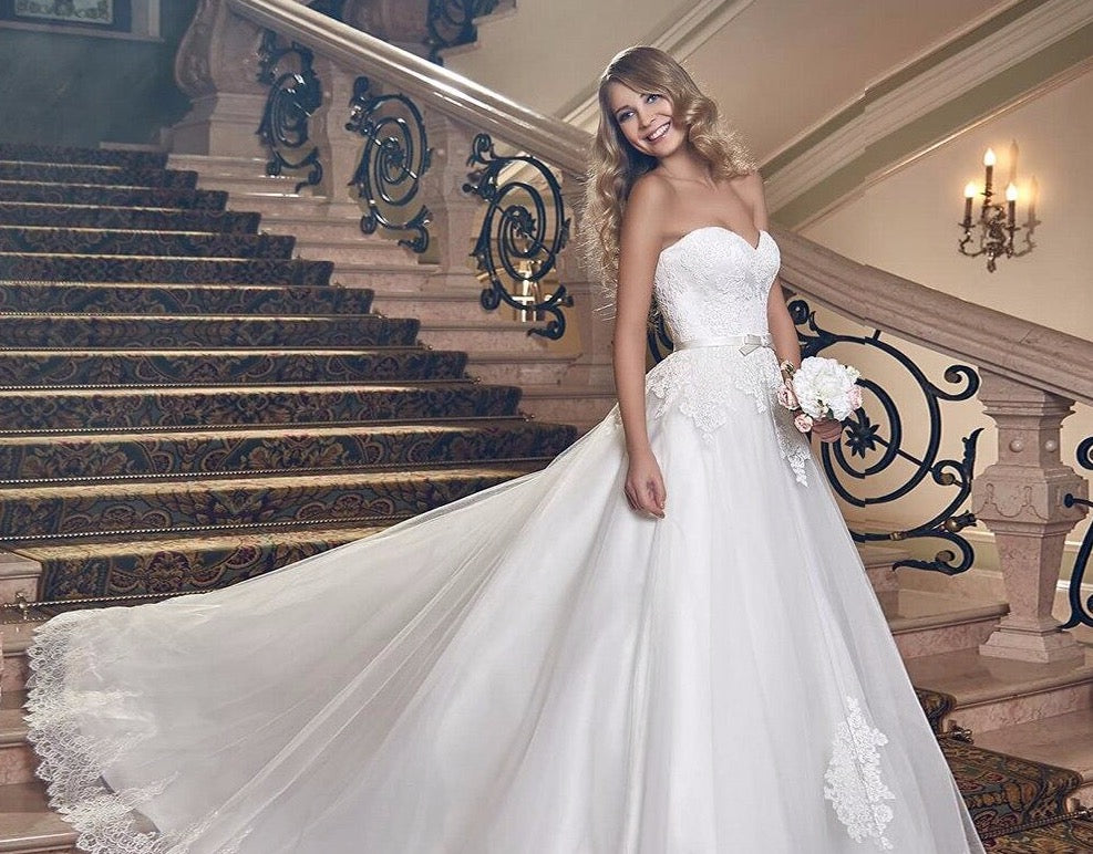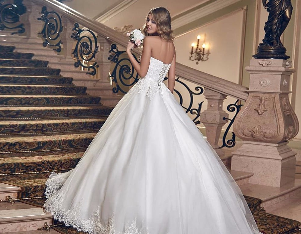 スウィートハートネック レースアップバック プリンセス ブライダルドレス