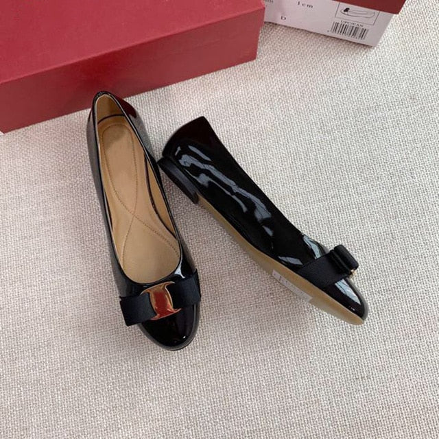 最高品質のハンドメイドレディースシューズ 100%本革ヒールシューズ レディース 人気定番ブランド フラットシューズ ボウシューズ サイズ34-42