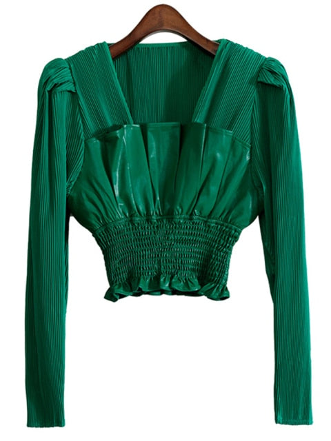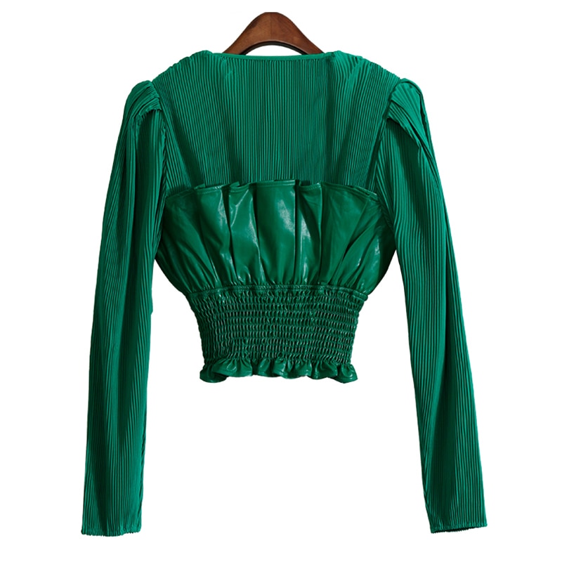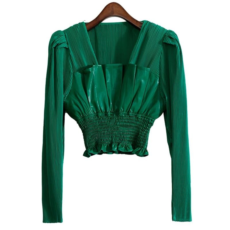 ホワイト エレガント フォールド プリーツ スリム シャツ スクエアカラー ブラウス 2022 春