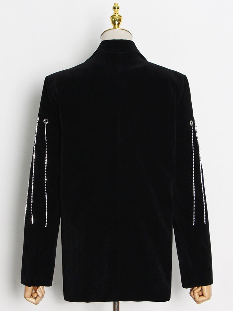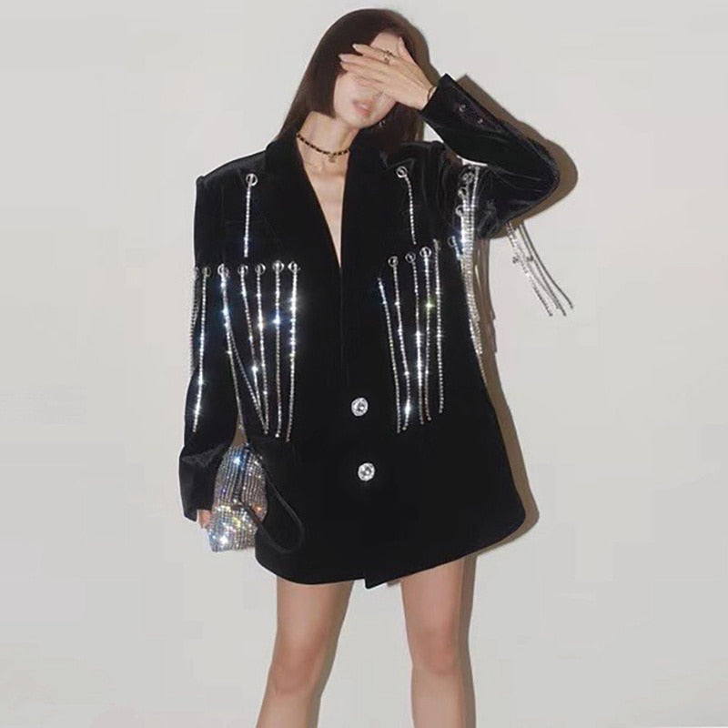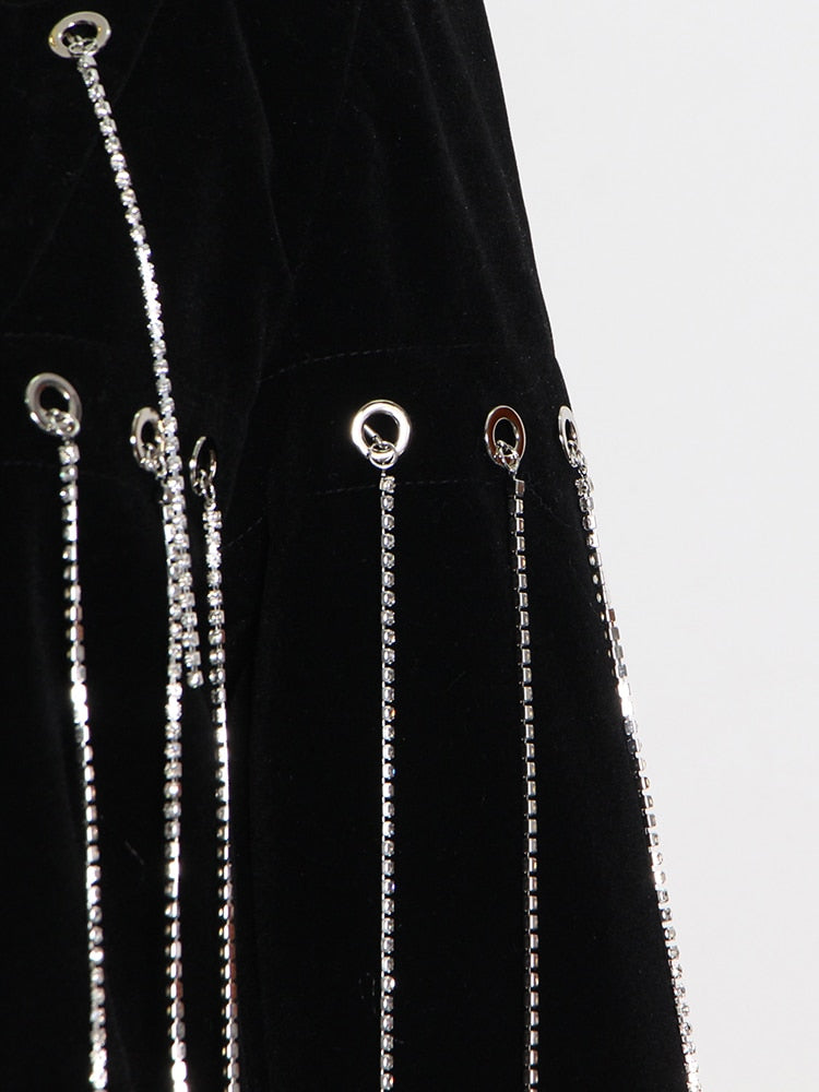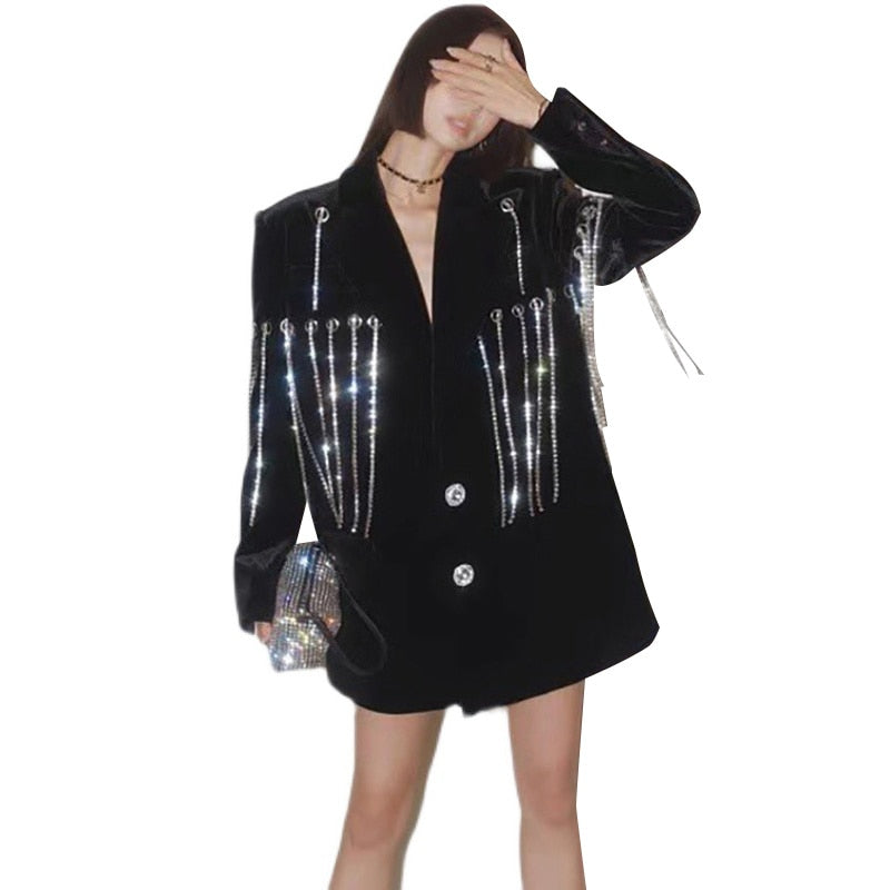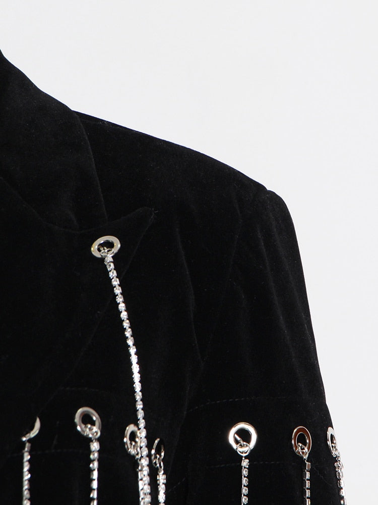ブラック カジュアル パッチワーク ダイヤモンド タッセル レディース ジャケット