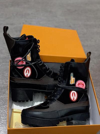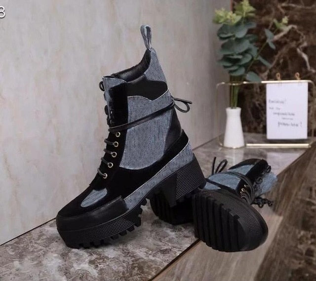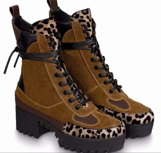 女性デザイナーブーツ マーティンデザートブーツ フラミンゴ ラブアローメダル 100%本革 粗め サイズ35-42 冬靴 ブーツ 女性