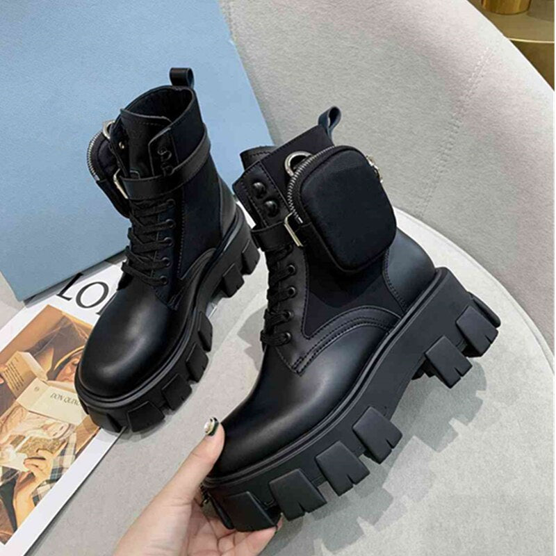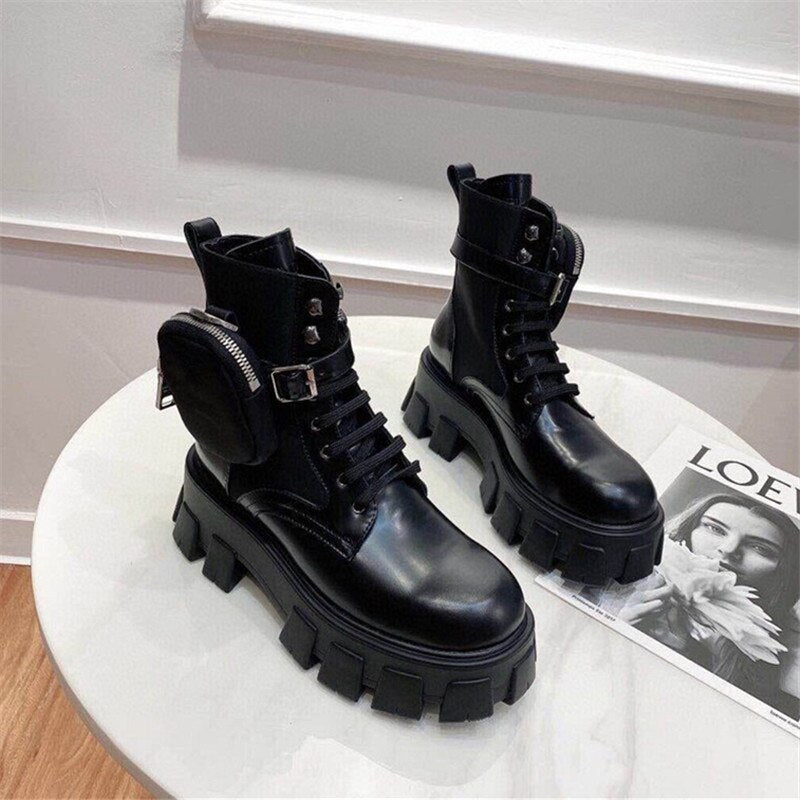 レディース モーターサイクルブーツ 厚底 レースアップ ラウンドトゥ