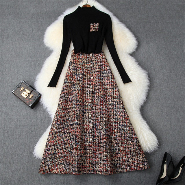 レディースファッション 秋冬 2ピースドレスセット