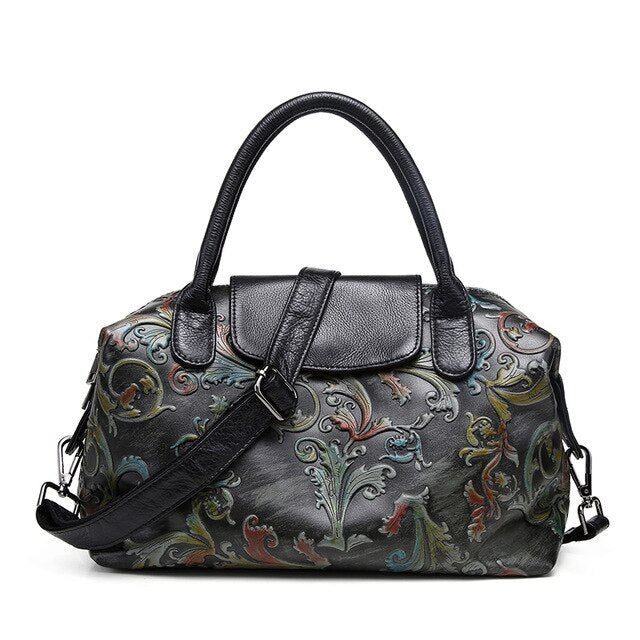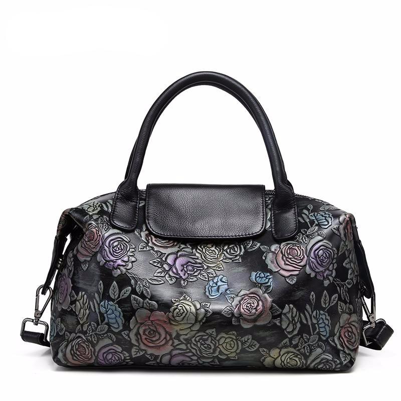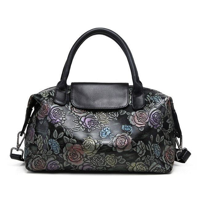 Genuine Leather Women Floral Print Handbag Ladies Cowhide Leather Tote Bag Fashion Design Special Women Shoulder Bag