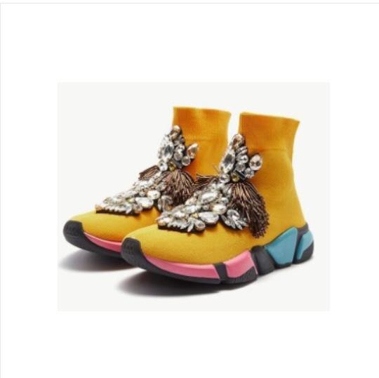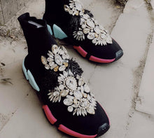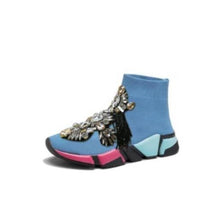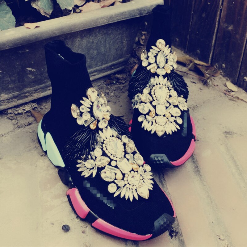 Crystals Sock Sneakers Boots Sport Female Flat Polyester Spandex Ankle Length Rhinestones Sock Sneakers Casual Shoes
