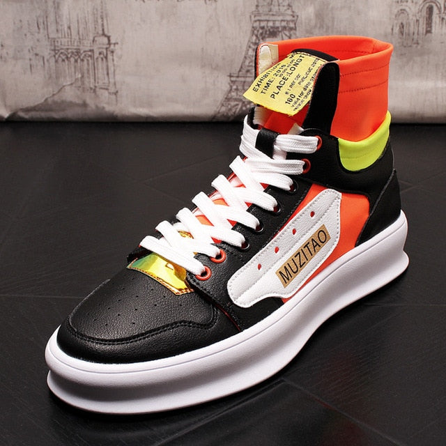 Fashion Designer Mens High tops Casual Shoes flats British Style Man Breathable mixec colors Trending Shoes web celebrity